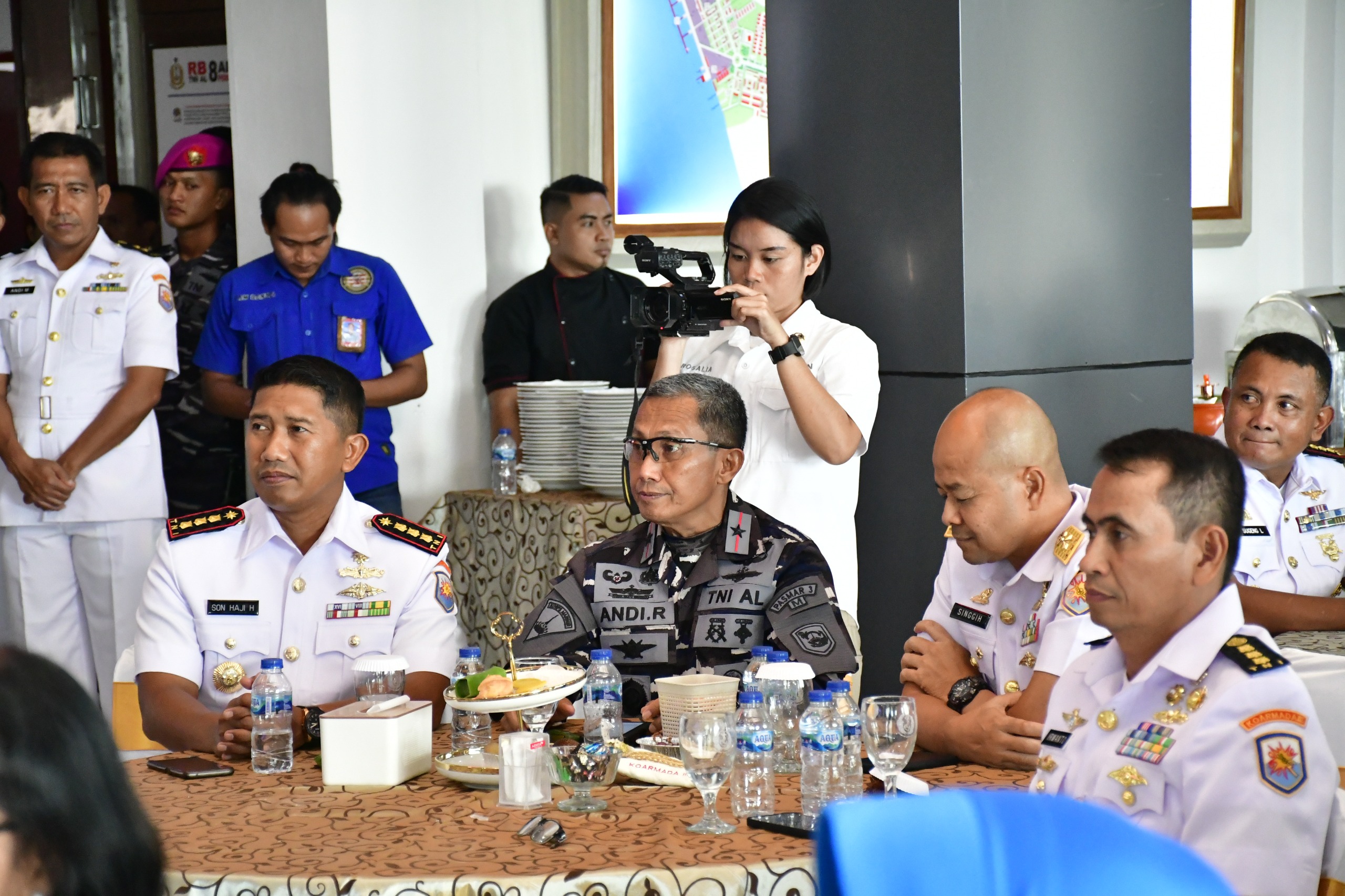 TNI AL, Dispen Kormar Sorong. Komandan Pasmar 3 Brigjen TNI (Mar) Andi Rahmat M., didampingi para Asisten Danpasmar 3 menghadiri acara Syukuran Serah Terima Jabatan (Sertijab) Pejabat Strategis di lingkungan Koarmada III bertempat di lobby Mako Koarmada III, Kel. Majener, Distrik Salawati, Kabupaten Sorong, Papua Barat Daya. Jumat (28/01/2025).