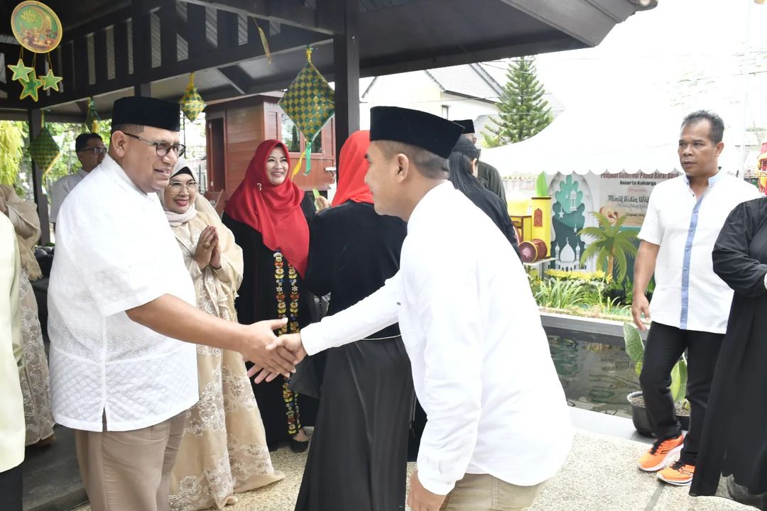 TNI AL, Dispen Kormar (Sorong). Komandan Pasmar 3 Brigjen TNI (Mar) Sugianto, S.Sos., M.M., didampingi Ketua Korcab Pasmar 3 Ny. Rita Sugianto menghadiri Open House Pj. Gubernur Papua Barat Daya Mohammad Musa’ad di kediamannya yang bertempat di Jl. Gunung Rinjani, Kampung Baru, Kota Sorong, Papua Barat Daya. Rabu (10/04/2024).