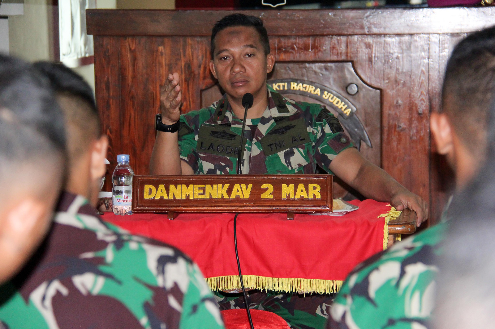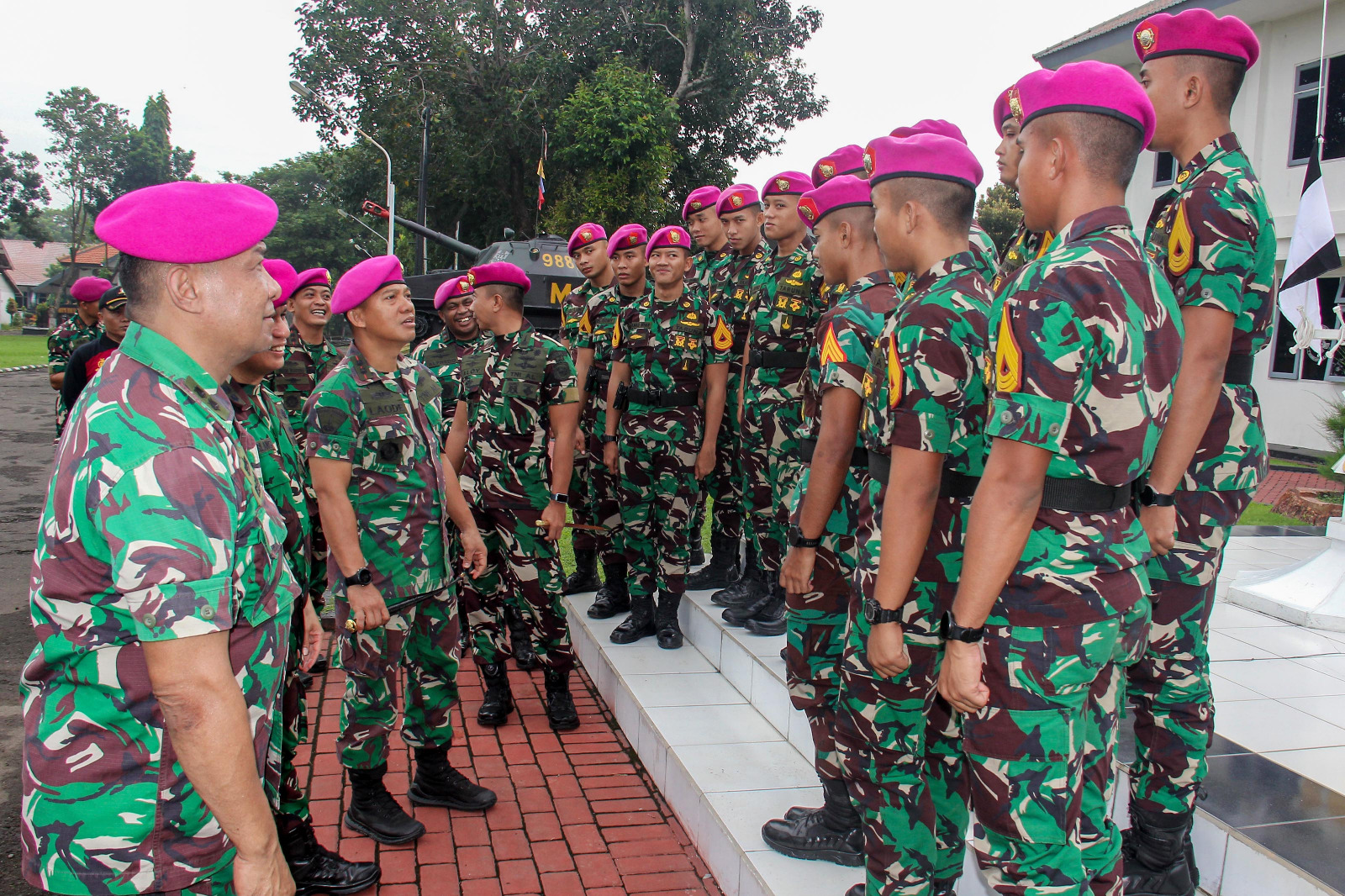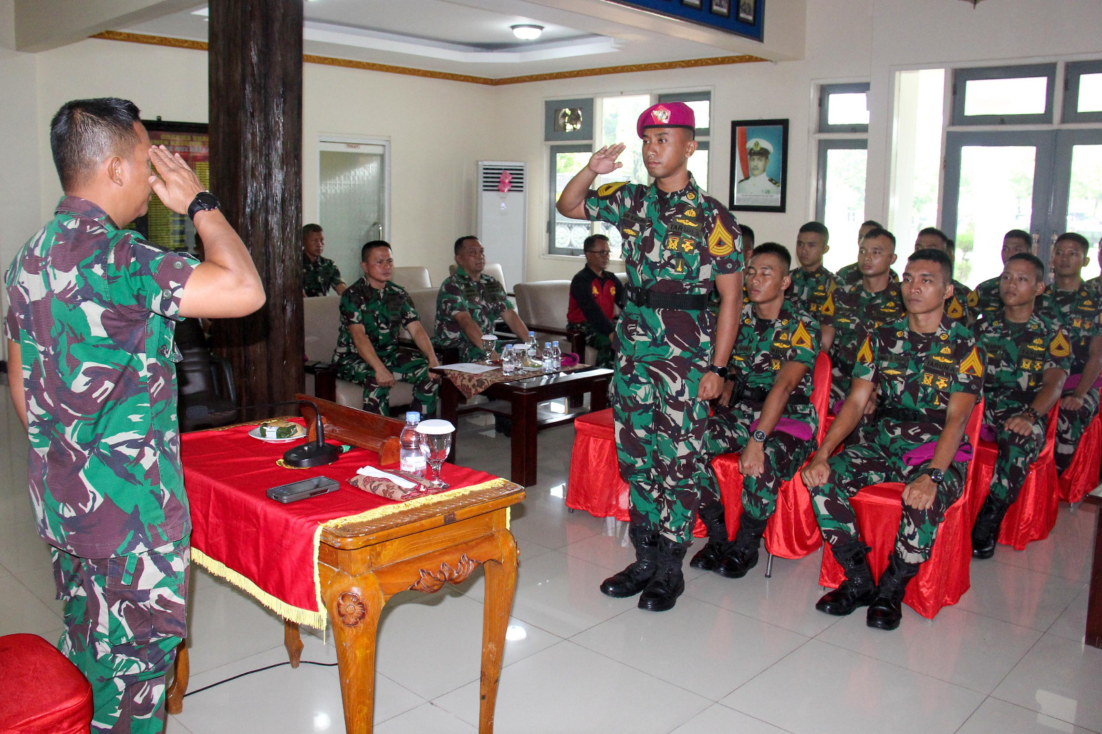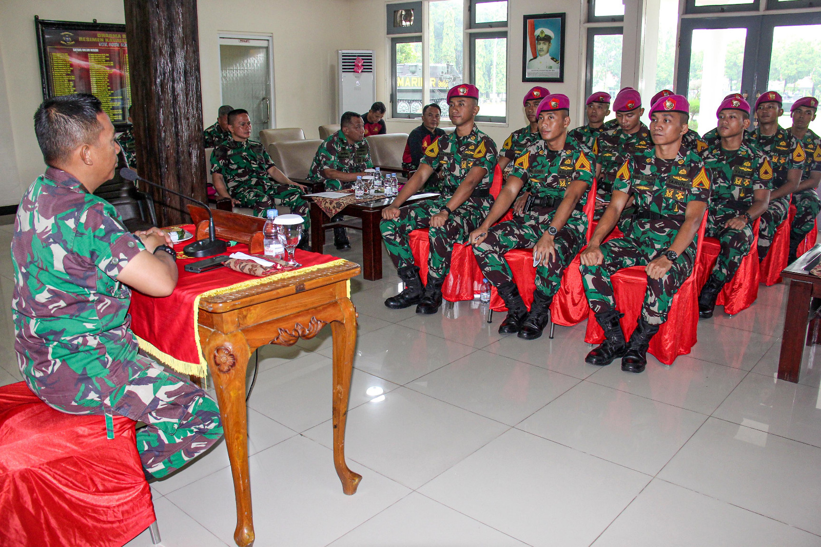 Komandan Resimen Kavaleri 2 Marinir, menerima Taruna AAL yang akan melaksanakan Latihan Praktek Pasukan di jajaran Satlak Menkav 2 Mar, yang didampingi oleh Perwira Pelaksana Latihan (Palaklat) Letkol Mar Egie Kadarsah.