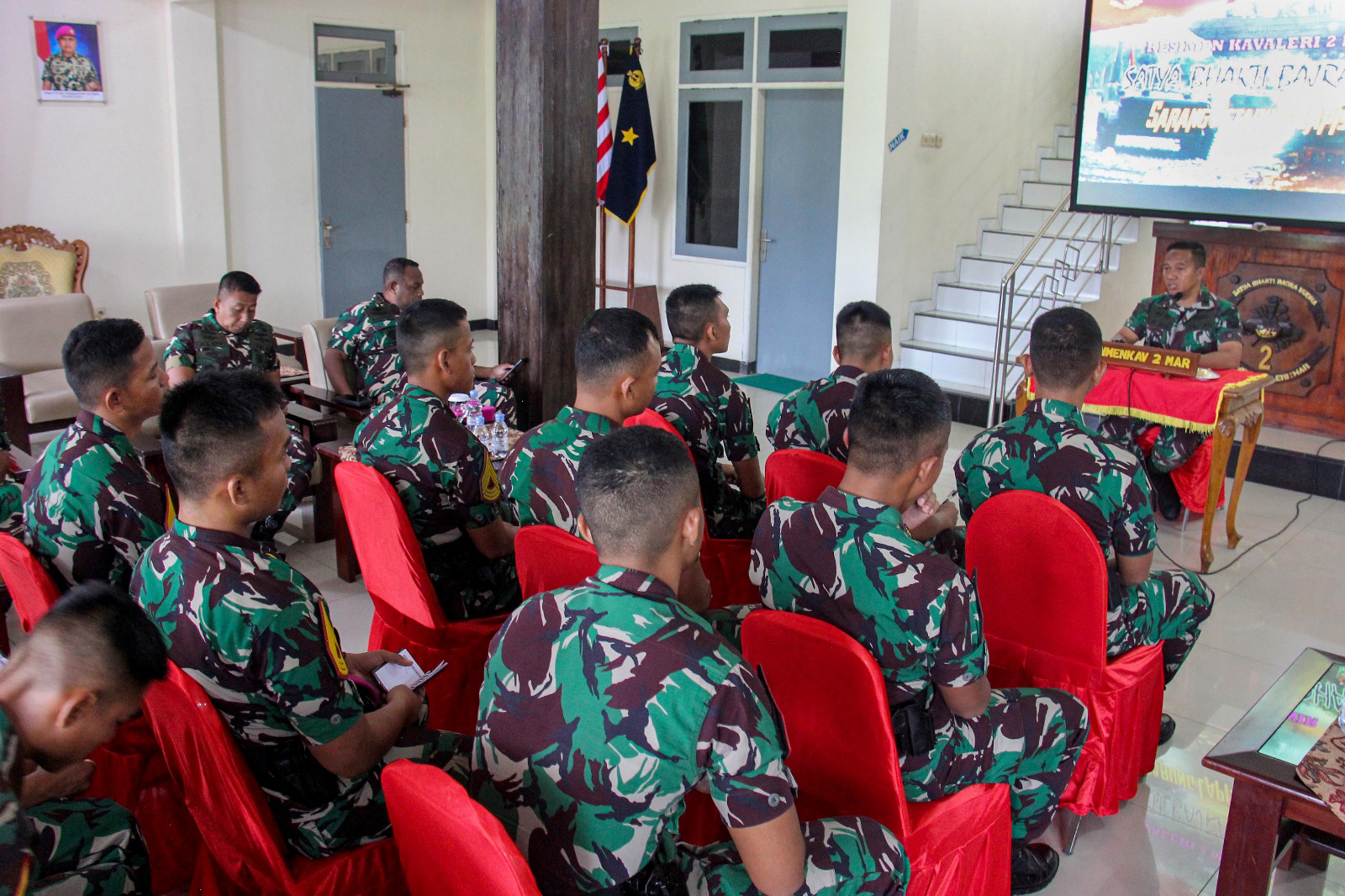 Mengawali kegiatan tersebut, Danmenkav 2 Mar memperkenalkan seluruh Perwira Staf Mako dan Dansatlak Menkav 2 Mar, dilanjutkan pemutaran profil perkembangan sejarah Kavaleri Marinir mulai awal terbentuk meliputi organisasi, personel dan materiel kendaraan tempur hingga saat ini.