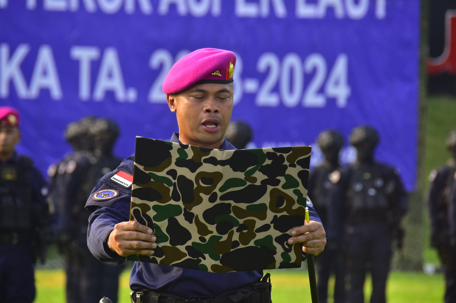 Dispen Kormar, TNI Angkatan Laut. (Jakarta). Komandan Komando Pembinaan Doktrin, Pendidikan dan Latihan TNI Angkatan Laut (Dankodiklatal) Letjen TNI (Mar) Nur Alamsyah, S.E., M.M. M.Tr (Han). diwakili Wakil Komandan Korps Marinir (Wadan Kormar) Brigjen TNI (Mar) Suherlan secara resmi menutup Kursus Penanggulangan Teror Aspek Laut (PTAL) Angkatan 17 TA 2023-2024 di Lapangan Apel Kesatrian Marinir Arthur Solang, Detasemen Jalamangkara (Denjaka), Jakarta Selatan, Kamis (20/06/2024).