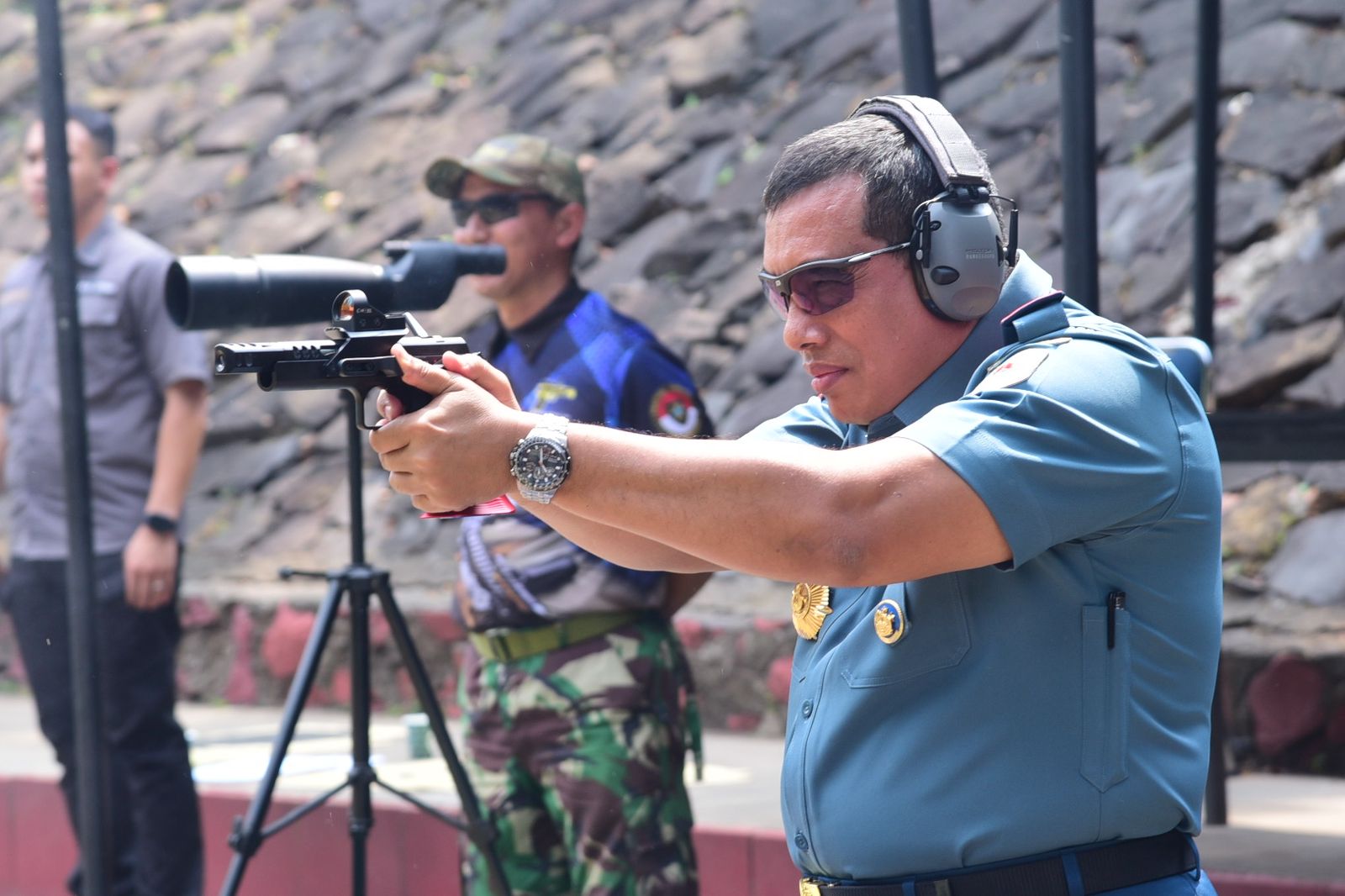 LATIH KONSENTRASI, KECEPATAN DAN KETEPATAN, DANKORMAR AJAK PEJABAT UTAMA KORMAR MENEMBAK PISTOL