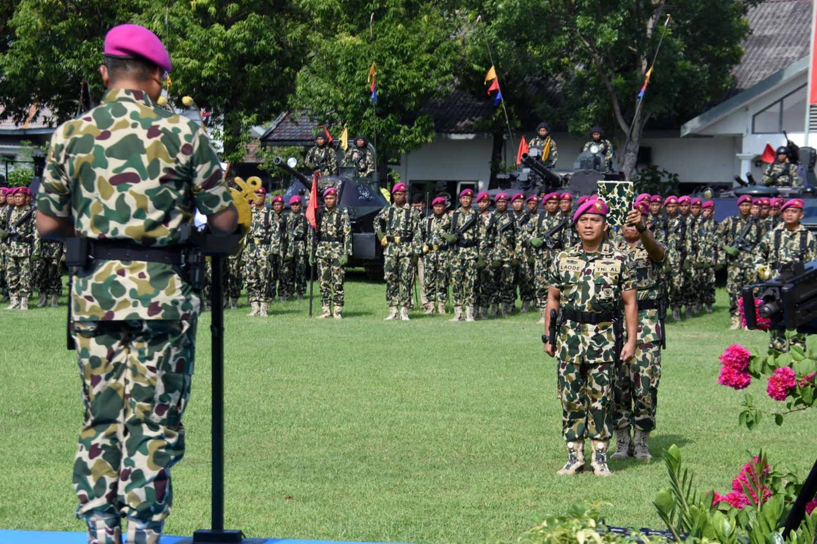 Nampak mengesankan serah terima jabatan disambut dengan gemuruh suara kendaraan tempur lapis baja sebagai background dan menampilkan ratusan aksi para pasukan baret ungu dengan seragam loreng macan tutul muncul dari gumpalan asap, ciri khas prajurit petarung Korps Marinir TNI AL.