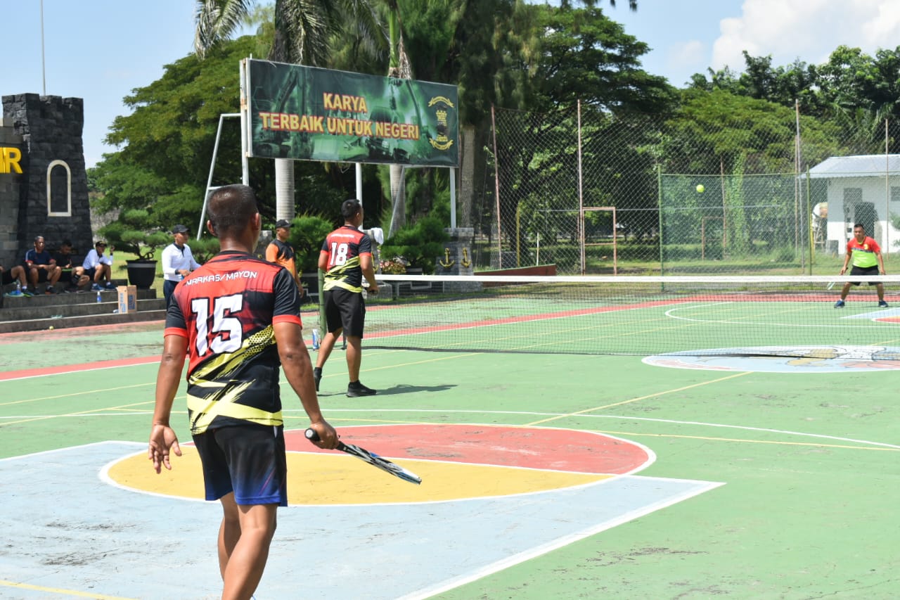 TNI AL, Dispen Kormar (Surabaya). Gelar Lomba Tenis Lapangan antar Kompi dalam rangka memeriahkan HUT Yonzeni 2 Mar yang dilaksanakan di lapangan Tenis Yonzeni 2 Mar Kesatrian Sutedi Senaputra Karangpilang, Surabaya. Selasa (30/04/2024).