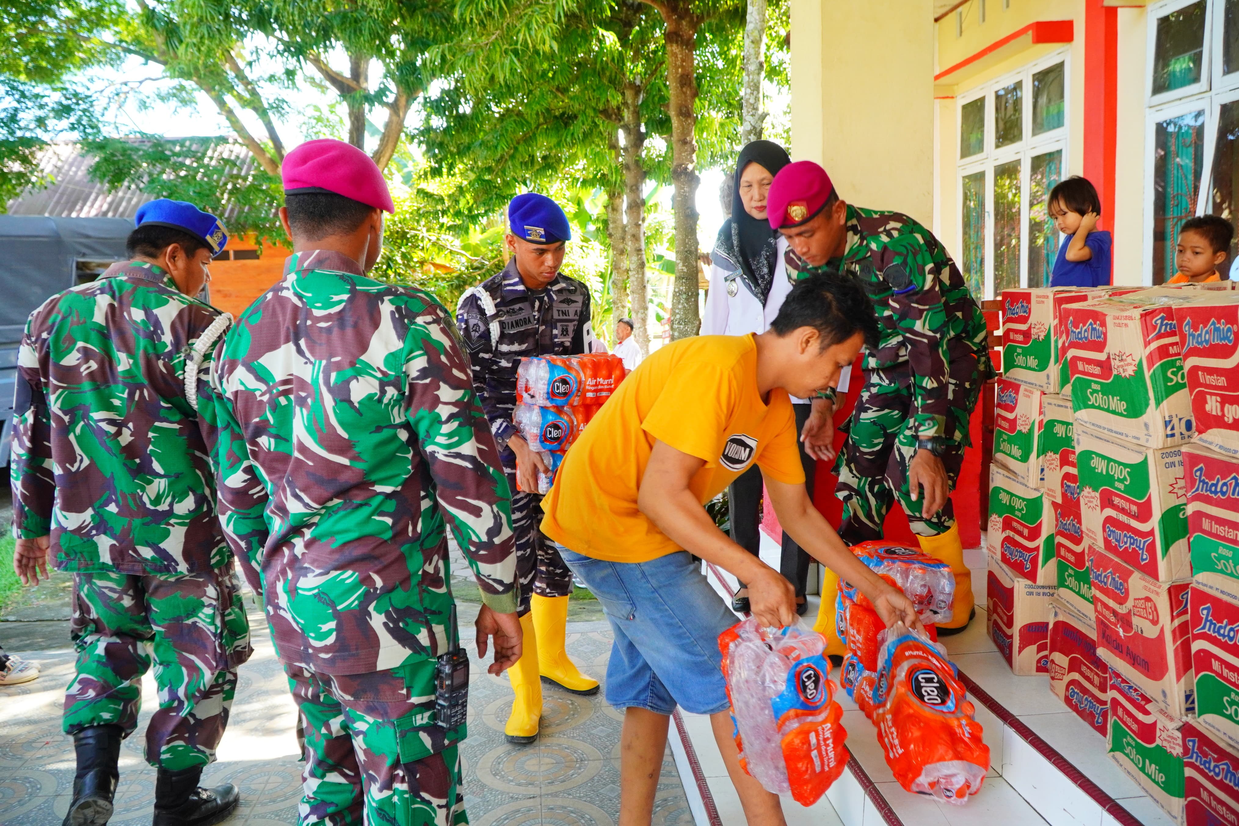 Bantuan logistik berupa paket makanan dan obat-obatan disalurkan oleh Prajurit Korps Marinir bersama dengan TNI Polri dan Basarnas kepada masyarakat yang terdampak banjir dan longsor di Kecamatan Suli, Kecamatan Bajo, dan Kecamatan Latimojong.