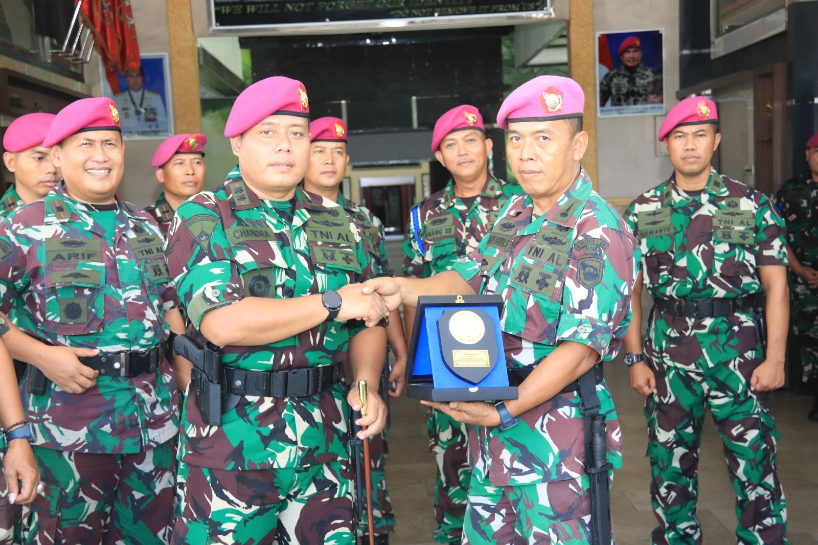 TNI AL, Dispen Kormar (Surabaya). Dalam rangka mutasi di Satuan Baru, Komandan Batalyon Komunikasi dan Elektronika 2 Marinir (Danyon Komlek 2 Mar) Letkol Marinir Chandra Lestari, M.Tr.Opsla dan perwakilan Prajurit Ruci Raswa Ruwita melepas dua perwiranya yang bertempat di Lobi Batalyon Komlek 2 Mar Kesatrian Marinir, Soetedi Senaputra, Karangpilang, Surabaya, Jawa Timur. Rabu (17/04/2024).