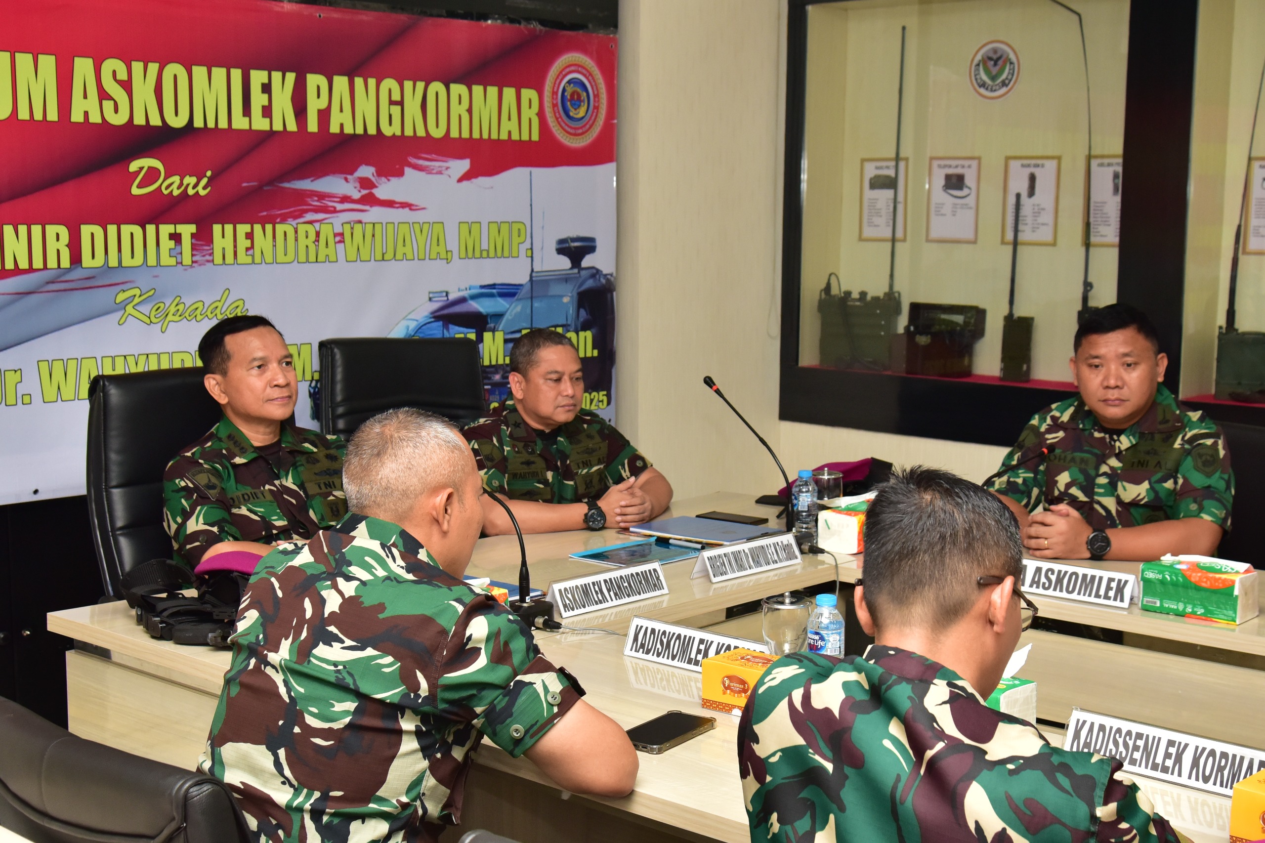 Dispen Kormar TNI Angkatan Laut (Jakarta)._ Menjelang dilaksanakannya Serah Terima Jabatan (Sertijab) Asisten Komunikasi dan Elektronika Pangkormar (Askomlek Pangkormar) dilaksanakan pembacaan memorandum oleh pejabat lama Kolonel Marinir Didiet Hendra Wijaya, M.Mp. Kepada pejabat baru Brigjen TNI (Mar) Dr. Wahyudi, S.E., M.Tr.Hanla., M.M M.Han., di ruang rapat Diskomlek Kormar, gedung Agoes Soebekti Kesatrian Marinir Ali Sadikin Mako Kormar, Jl. Prajurit KKO Usman dan Harun No.40, Jakarta Pusat, Senin (09/09/2025).