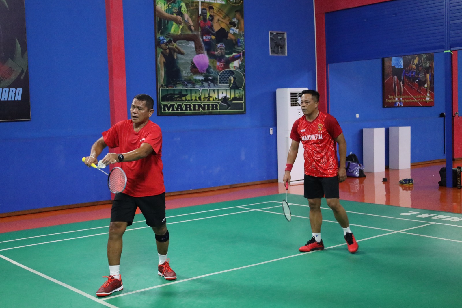 Dispen Kormar TNI Angkatan Laut (Sidoarjo). Dalam rangka menjaga kebugaran dan ketahanan fisik, Wakil Komandan Korps Marinir (Wadan Kormar) Brigjen TNI (Mar) Suherlan didampingi atlet Marinir Wilayah Timur (Marwiltim) melaksanakan olahraga bulutangkis di Raksa Badminton Hall, Lapangan Bulutangkis Mako Pasmar 2, Gedangan, Sidoarjo. Jum'at (28/06/2024).