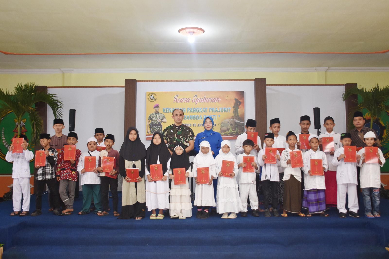 Setelah rangkaian upacara penyematan tanda pangkat selesai, Komandan beserta prajurit Yonbekpal 2 Mar mengajak 25 anak yatim Panti Asuhan Deabu Bakar Driyorejo, Gresik untuk mensyukuri anugerah yang diberikan oleh Allah SWT. Dengan berbagi kebahagiaan tersebut diharapkan kinerja dalam melaksanakan tugas akan lebih baik dibanding ketika masih mengenakan tanda pangkat sebelumnya.