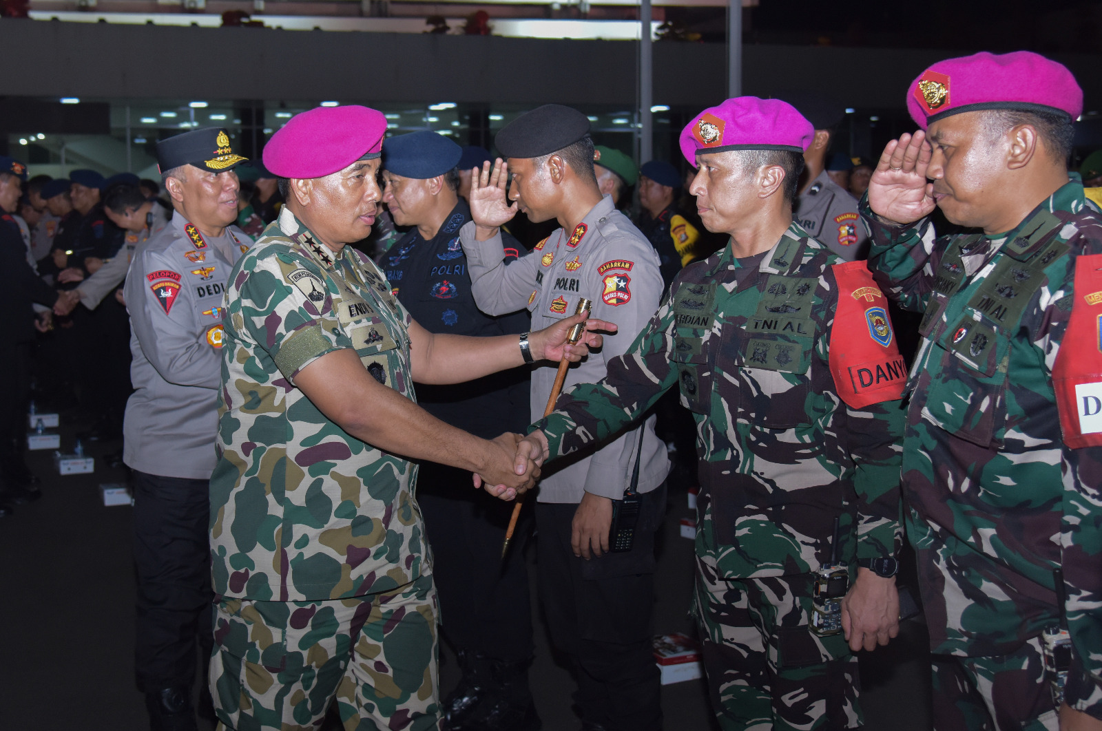 Dalam kesempatan tersebut, Letnan Jenderal TNI (Mar) Dr. Endi Supardi, S.E., M.M., M.Tr.Opsla., CHRMP., CRMP. menegaskan kepada seluruh prajurit agar tidak mudah terprovokasi oleh upaya adu domba yang dapat memecah belah bangsa. Pangkormar menekankan bahwa kekuatan TNI dan Polri terletak pada persatuan, dan selama soliditas itu terjaga maka tidak ada kekuatan apapun yang mampu menggoyahkan NKRI. âJangan pernah goyah, jangan pernah terpecah. TNI dan Polri adalah benteng terakhir bangsa, kita berdiri tegak demi kehormatan merah putih,â tegasnya.