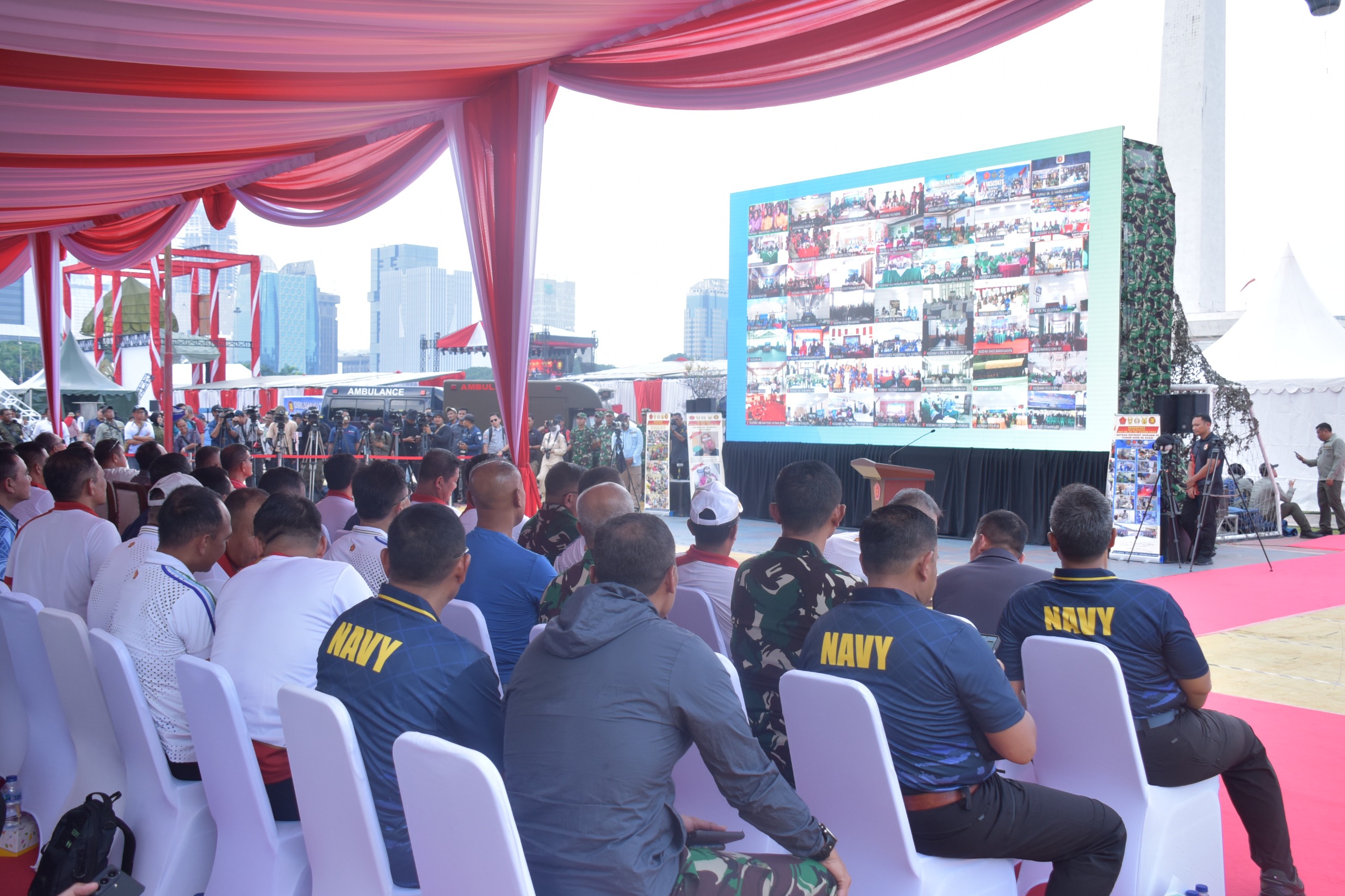 Dispen Kormar TNI Angkatan Laut (Jakarta). Panglima Korps Marinir (Pangkormar) Letnan Jenderal TNI (Mar) Dr. Endi Supardi, S.E., M.M., M.Tr.Opsla., CHRMP., CRMP., bersama Ketua Gabungan Jalasenastri Korps Marinir Ny. Nana Endi Supardi turut mendampingi Panglima TNI Jenderal TNI Agus Subiyanto, S.E., M.Si. dalam kegiatan Bakti Sosial Kesehatan dan Donor Darah dalam rangka peringatan Hari Ulang Tahun ke-80 Tentara Nasional Indonesia (TNI) yang digelar di halaman Silang Monas Jakarta Pusat. Minggu (21/09/2025).