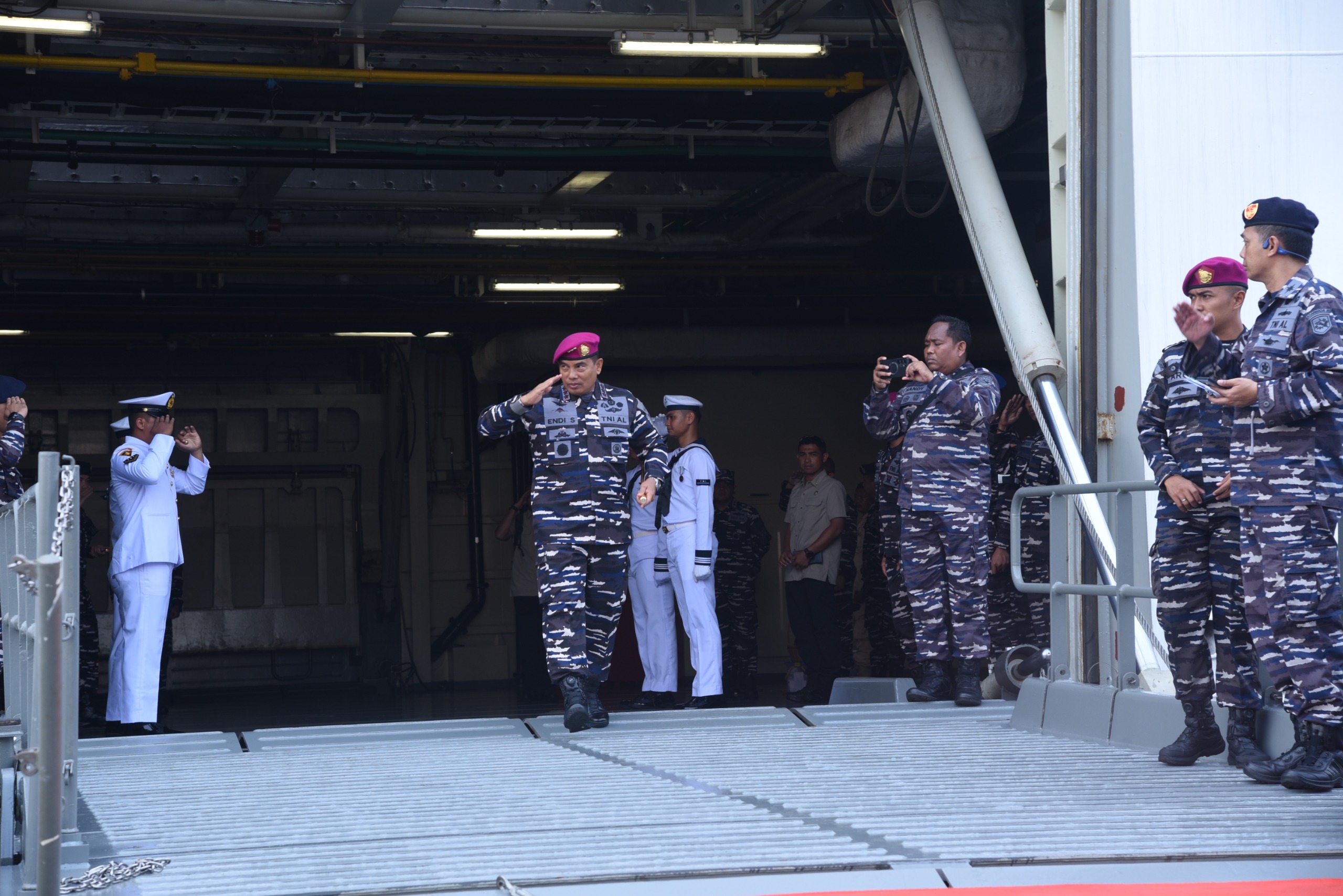Dispen Kormar TNI Angkatan Laut (Jakarta). Panglima Korps Marinir (Pangkormar) Letnan Jenderal TNI (Mar) Dr. Endi Supardi, S.E., M.M., M.Tr.Opsla., CHRMP., CRMP., menghadiri Geladi Kotor I Upacara Penganugerahan Tanda Kehormatan Bintang Yudha Dharma Pratama dan Sailing Pass dalam rangka memperingati HUT ke-80 Tentara Nasional Indonesia (TNI), bertempat di Komando Lintas Laut Militer (Kolinlamil), Jakarta Utara, Kamis (25/9/2025).