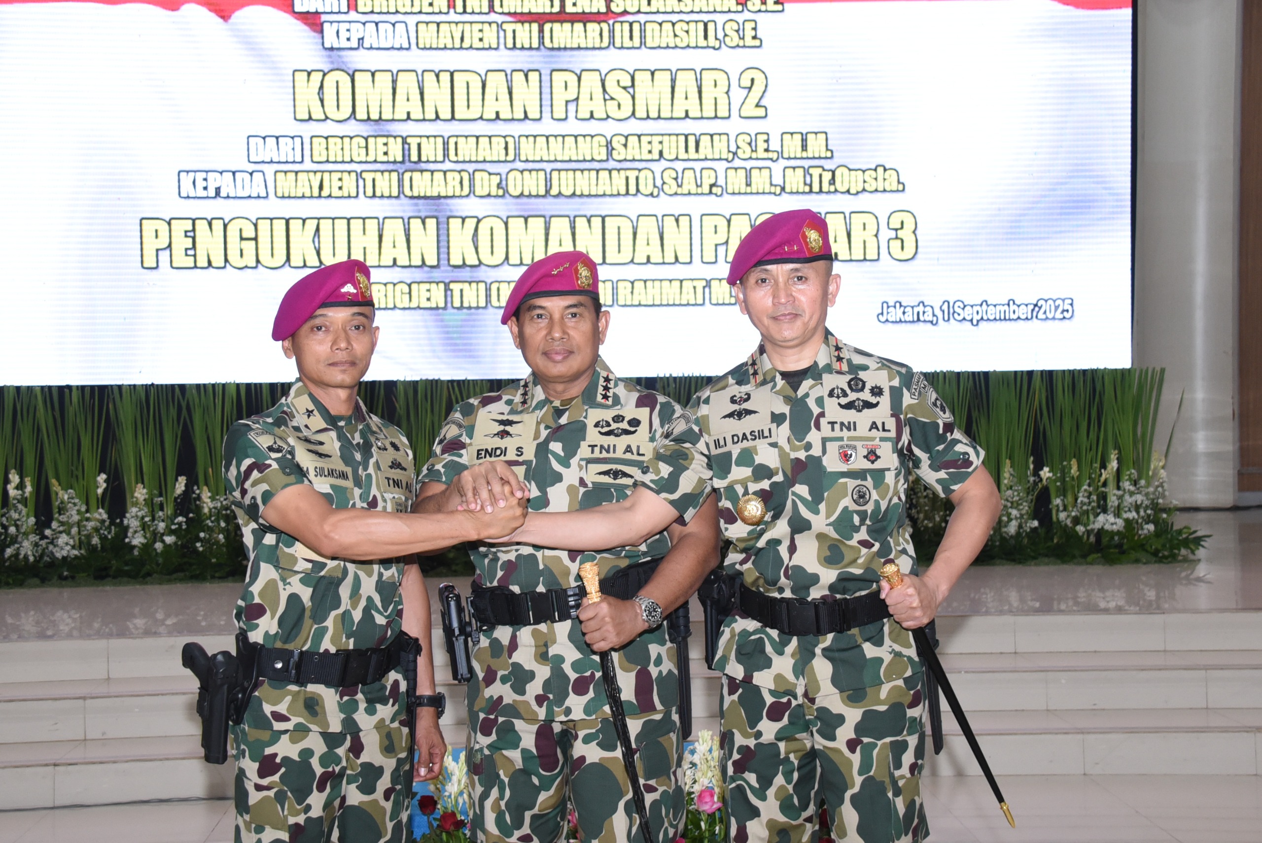 Berdasarkan Surat Perintah Pangkormar Nomor Sprin/1952/VIII/2025, tanggal 23 Agustus 2025 jabatan Komandan Pasmar 1 resmi diserahterimakan dari Brigjen TNI (Mar) Ena Sulaksana, S.E., kepada Mayjen TNI (Mar) Ili Dasili, S.E., yang sebelumnya menjabat Deputi Bidang Info Hukum dan Kerja Sama Bakamla selanjutnya Brigjen TNI (Mar) Ena Sulaksana, S.E. selanjutnya dipercaya mengemban amanah sebagai Wakil Gubernur Akademi Angkatan Laut (Wagub AAL).