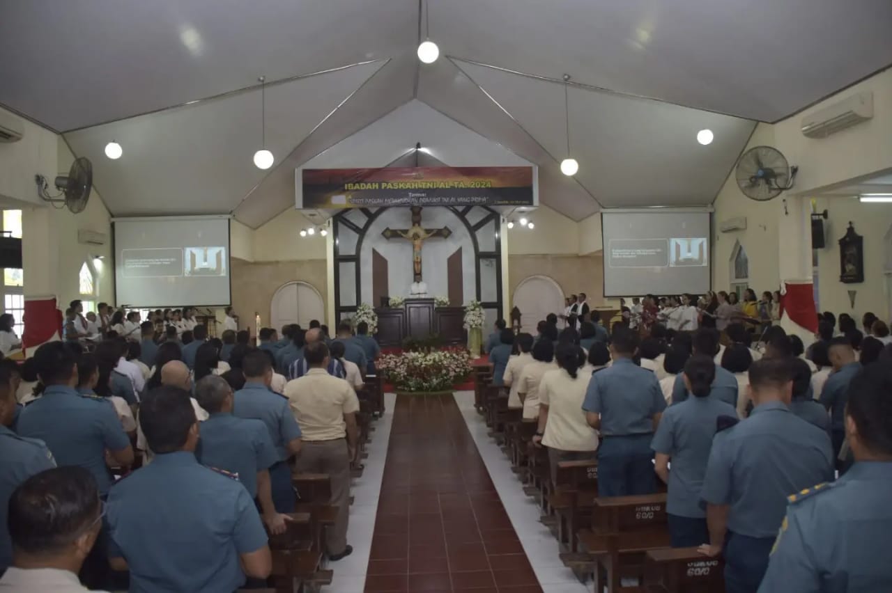 TNI AL, Dispen Kormar (Jakarta), Pasmar 1. Umat Kristiani Pasmar 1 Korps Marinir menggelar perayaan ibadah Paskah Gabungan Kotama TNI AL wilayah Jakarta tahun 2024 yang diikuti oleh seluruh Satuan Kotama di wilayah Jakarta bertempat di Gedung Gereja Oikumene Bahtera Kasih, Kesatrian Marinir Hartono, Cilandak, Jakarta Selatan, Kamis (02/05/2024).
