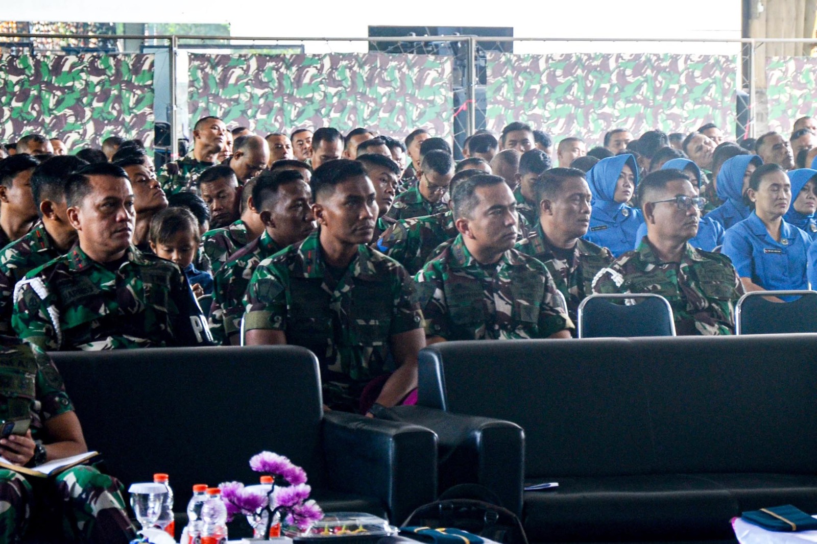 TNI AL Dispen Kormar (Surabaya) Komandan Batalyon Infanteri 1 Marinir Letkol Marinir Roni Saputra, M.Tr.Opsla beserta Prajurit dan Jalasenastri menerima penyuluhan sosialisai Hukum dan Personel dari Markas Besar TNI Angkatan Laut bertempat di Indoor Sport Karangpilang, Surabaya, Jawa Timur. Kamis (25/07/2024).