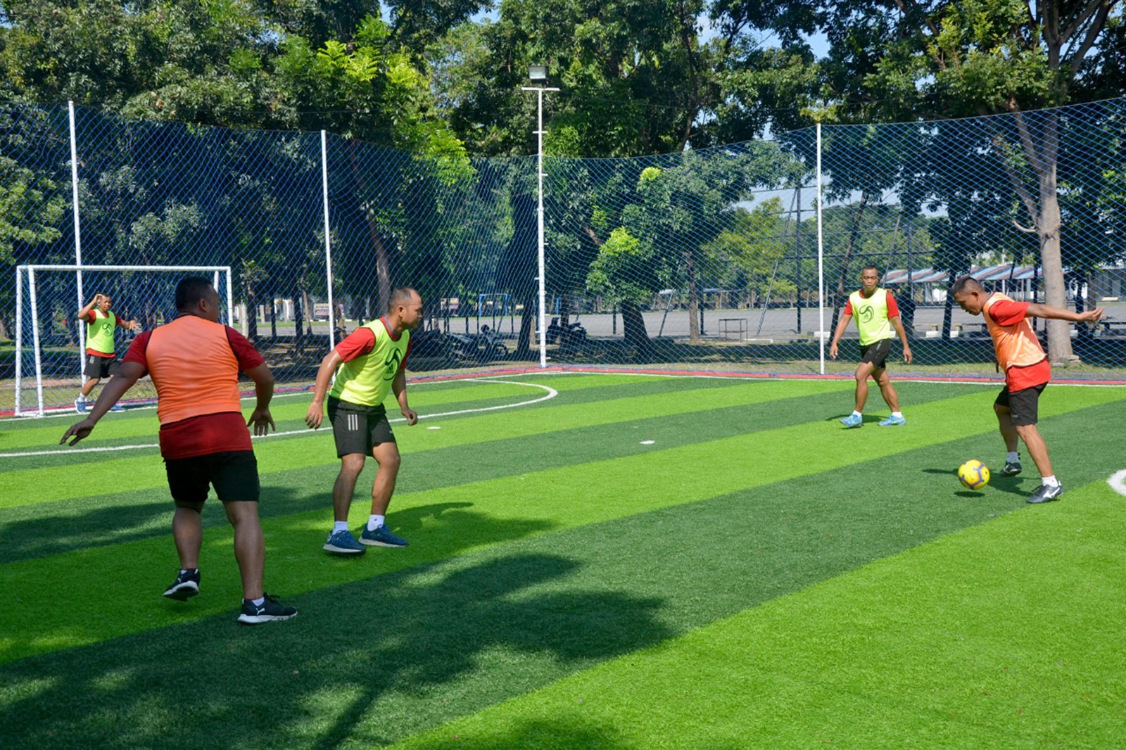 Kegiatan tersebut diawali dengan pemanasan, Senam Kesegaran Jasmani dan dilanjutkan jogging mengelilingi Kesatrian Marinir R. Suhadi dan diakhiri dengan pertandingan Fun Game Futsal dan Voli antar Perwira Satlak.