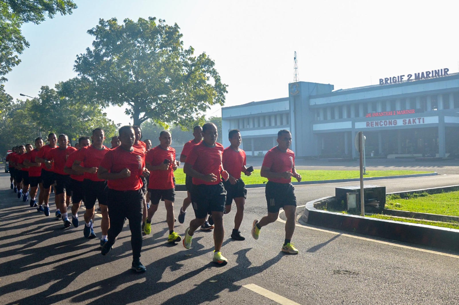 Penuh Semangat, Perwira Batalyon Infanteri 1 Marinir Olahraga Bersama Komandan Brigif 2 Marinir
