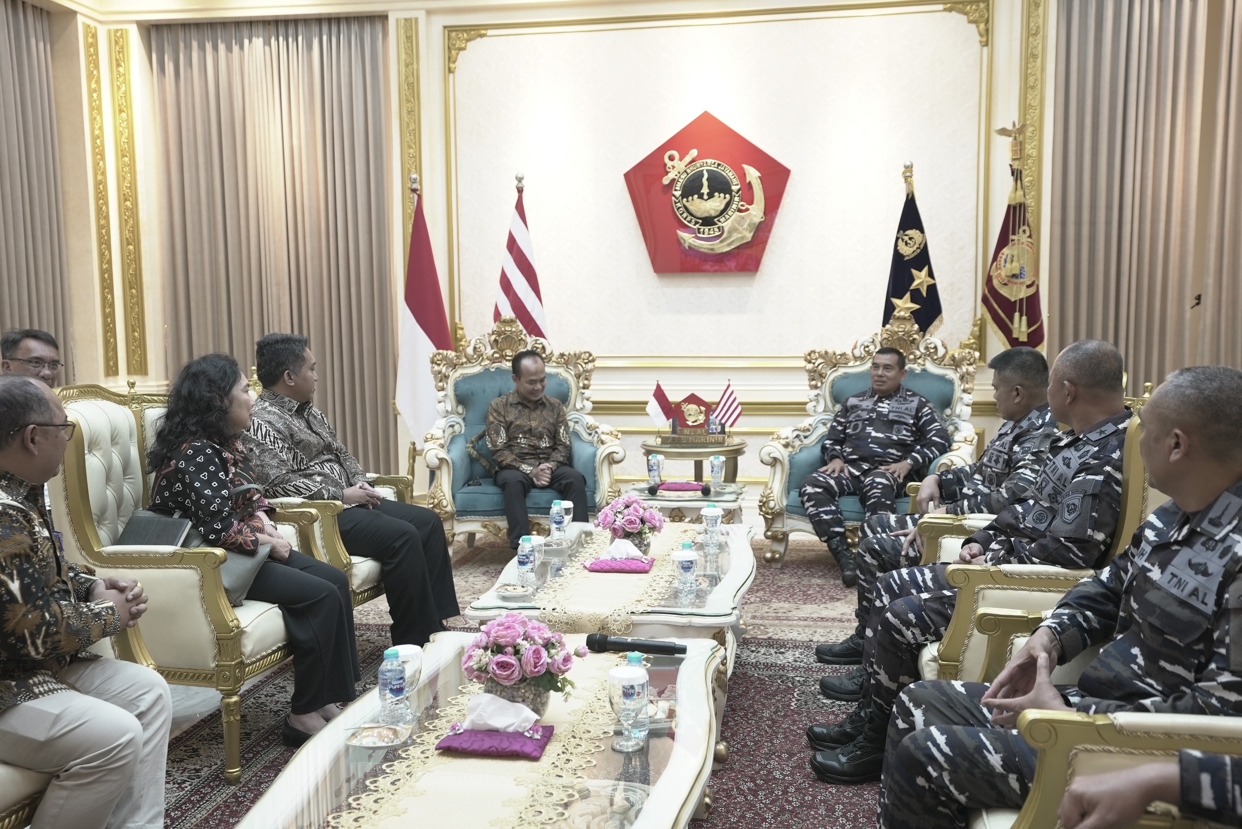 Dispen Kormar TNI Angkatan Laut (Jakarta). Panglima Korps Marinir (Pangkormar) Letnan Jenderal TNI (Mar) Dr. Endi Supardi, S.E., M.M., M.Tr.Opsla., CHRMP., CRMP., menerima kunjungan kerja Sekretaris Kementrian Koordinator Bidang Perekonomian (Sesmenko Perekonomian) Bapak Susiwijono Moegiarso, S.E., M.E., beserta staf dan delegasi perwakilan badan dan kementerian di Admiral Room Gedung Utama Mako Kormar, Jakarta Pusat, pada Kamis (04/09/2025).