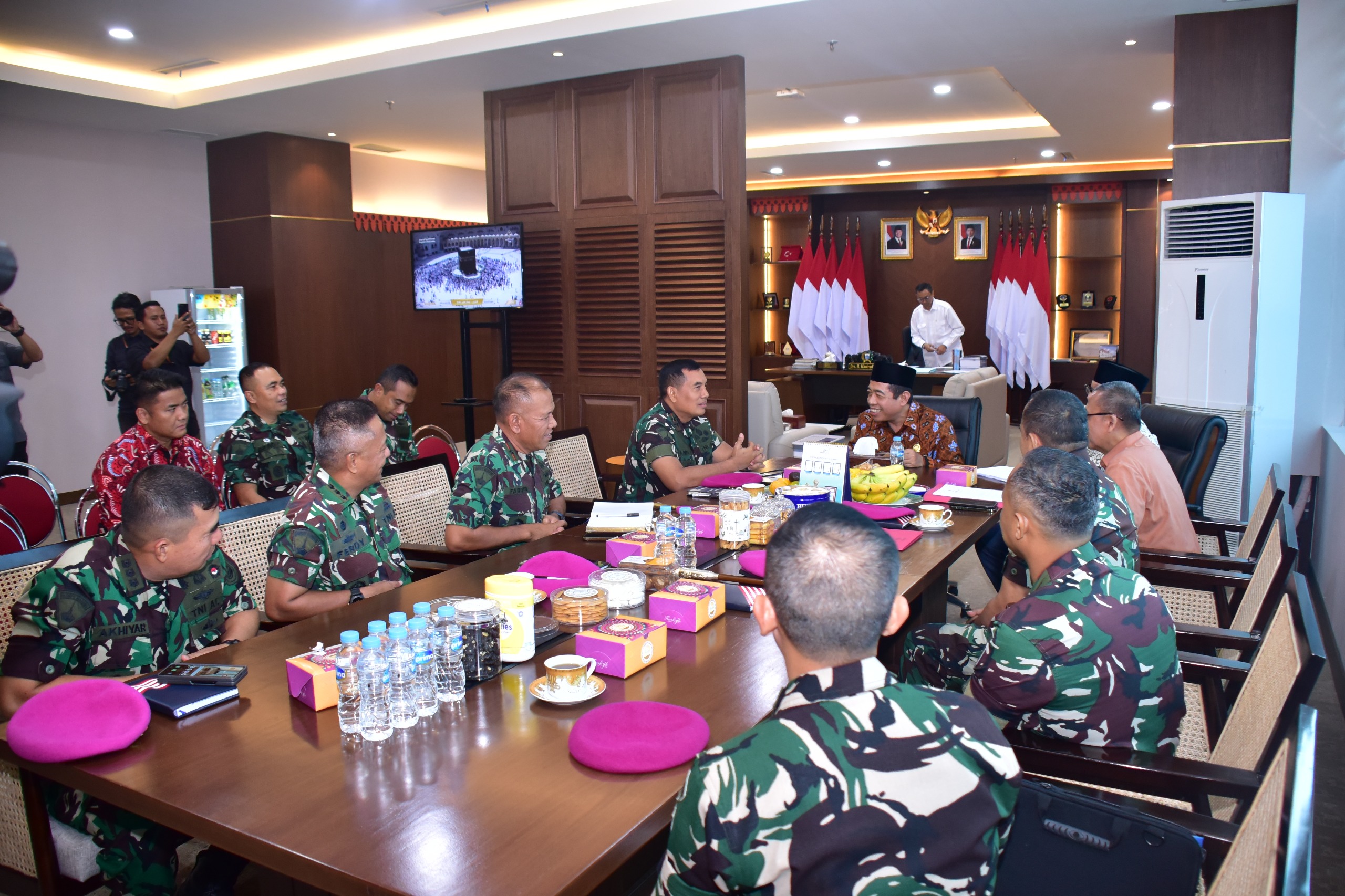 Kegiatan diakhiri dengan kedua pucuk pimpinan saling bertukar plakat sebagai tanda terima kasih atas kunjungan kehormatan yang berlangsung dengan penuh keakraban, diakhiri dengan sesi foto Bersama.