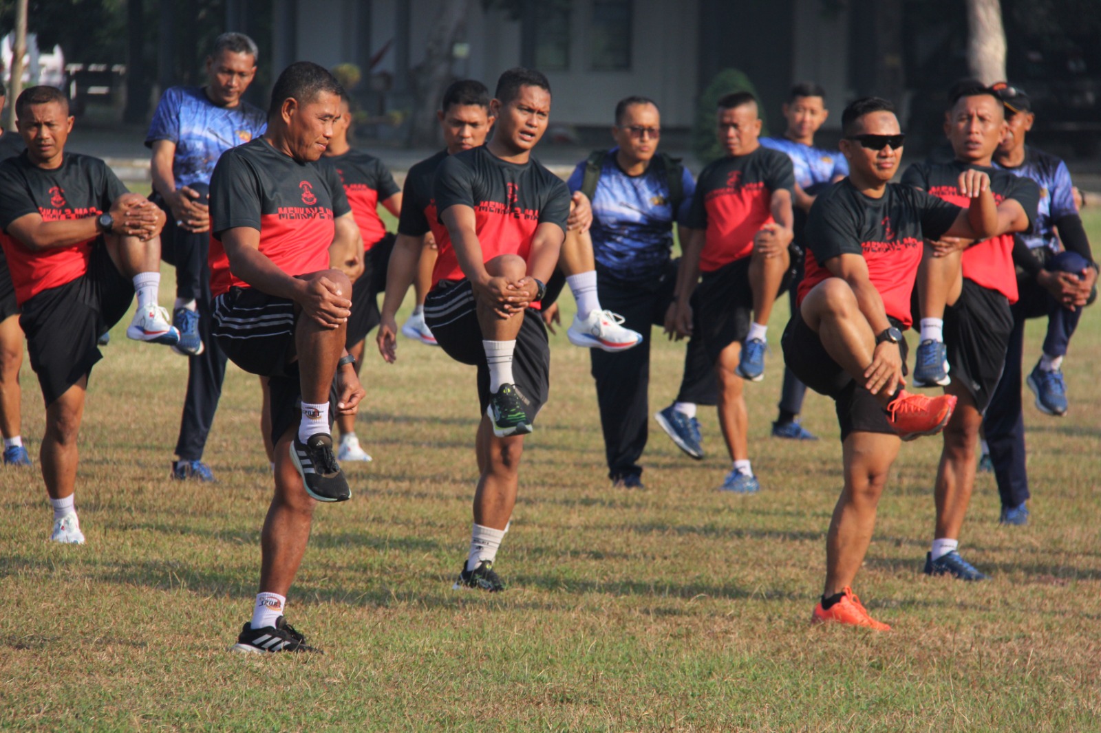 TNI Angkatan Laut, Dispen Kormar (Surabaya). Komandan Batalyon Kendaraan Pendarat Amfibi 2 Marinir (Danyonranratfib 2 Mar) Letkol Marinir Aloysius Y.N., M.Tr.Opsla, bersama seluruh Perwira jajaran Resimen Kavaleri 2 Marinir (Menkav 2 Mar) beserta Perwira jajaran Resimen Artileri (Menart 2 Mar) melaksanakan olahraga bersama yang dilaksanakan di Cavalry Sport Center (CSC), Trian Mar Soepraptono, Semarung, Ujung, Surabaya, Selasa (23/07/2024)