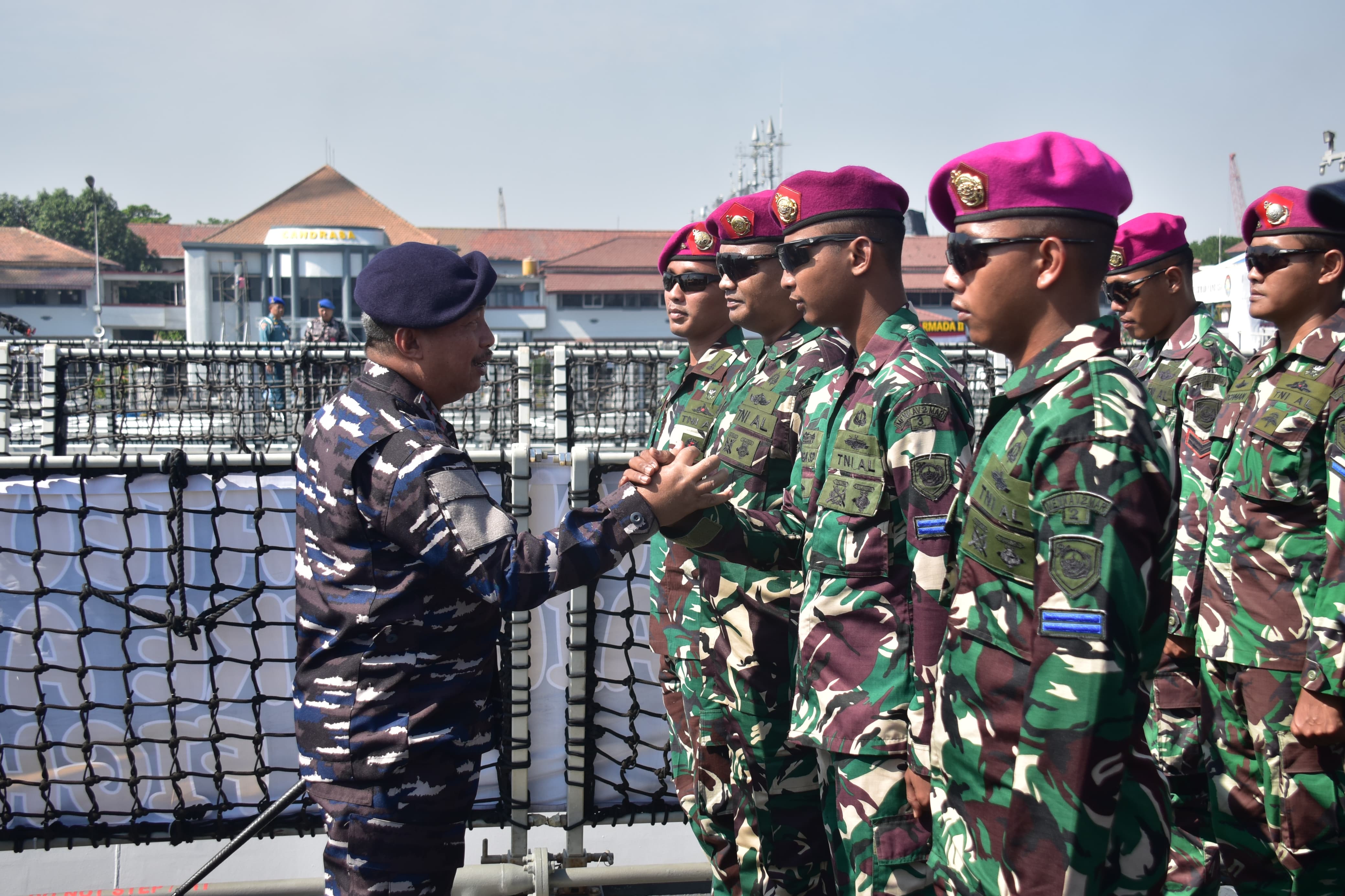 PRAJURIT KORPS MARINIR TNI AL YANG TERLIBAT SATGAS RIMPAC 2024 IKUTI PENYAMBUTAN DAN PENERIMAAN OLEH PANGKOARMADA II