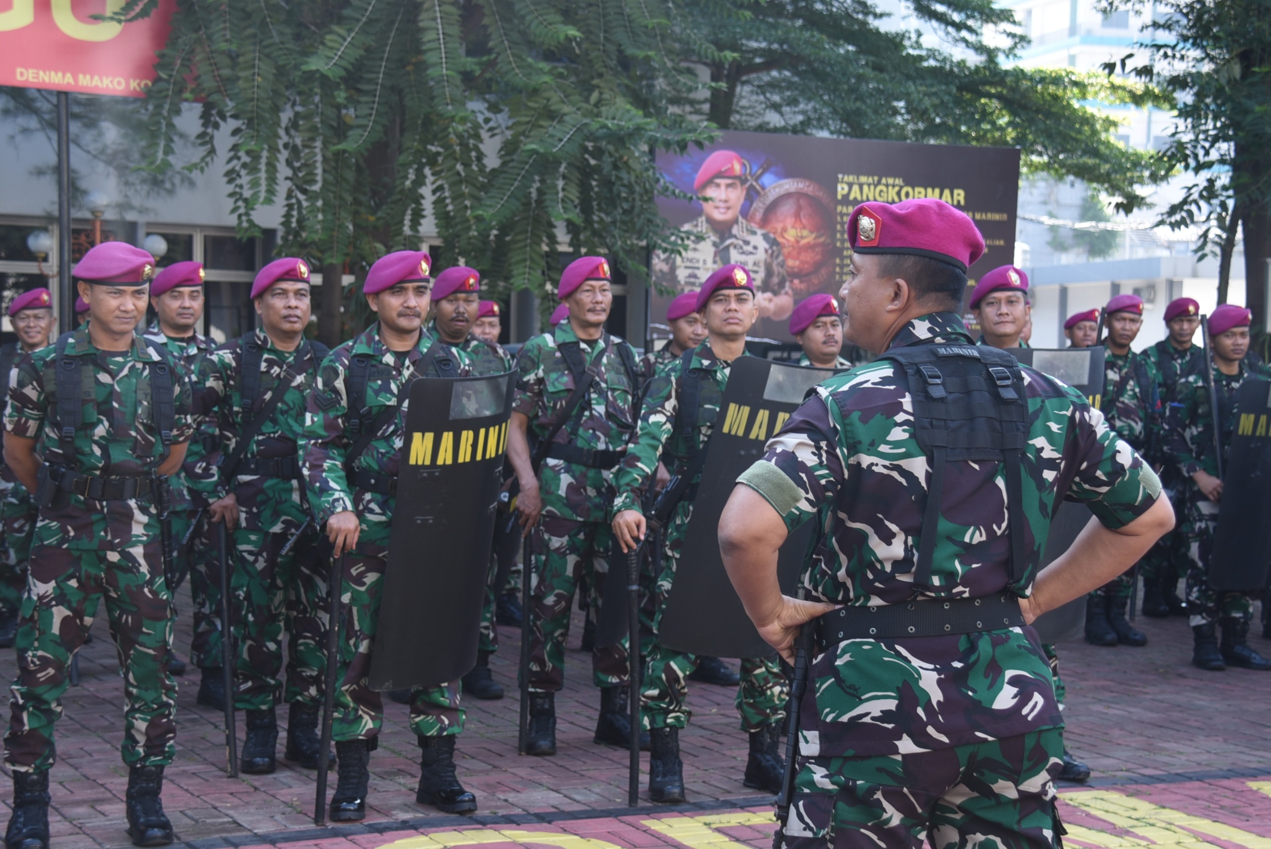 PRAJURIT MAKO KORMAR LAKSANAKAN APEL KESIAPSIAGAAN PENGAMANAN UNJUK RASA