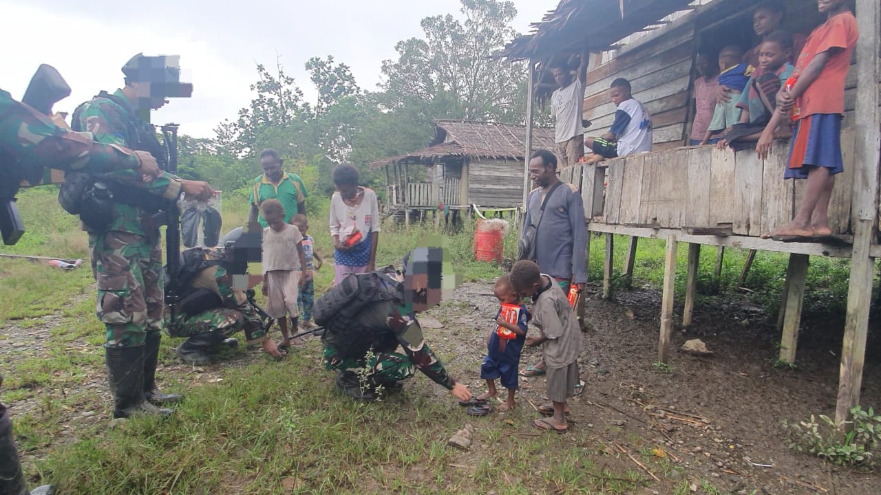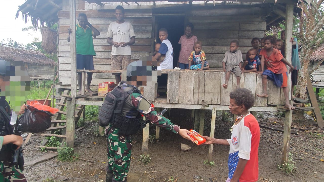 Dispen Kormar TNI Angkatan Laut (Yahukimo Papua Pegunungan). Satgas Pamtas Mobile RI-PNG melaksanakan pemberian sembako dan pegobatan secara terbatas kepada masyarakat kampung Pattipi, Selasa (21/05/2024).