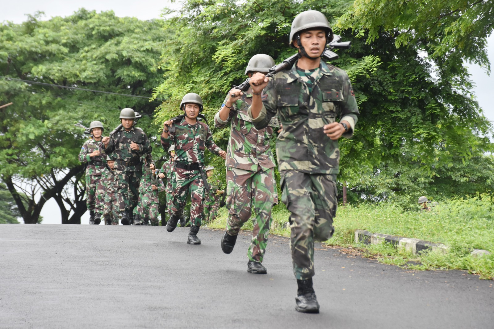 TNI AL, Dispen Kormar (Surabaya). Dalam rangka menguji ketahanan fisik serta melatih ketangkasan, prajurit Turangga Cakti Batalyon Perbekalan dan Peralatan 2 Marinir (Yonbekpal 2 Mar) melaksanakan latihan Lari Lintas Alam yang bertempat di seputaran Kesatrian Marinir Soetedi Senaputra Karangpilang, Surabaya. Kamis (25/04/2024).