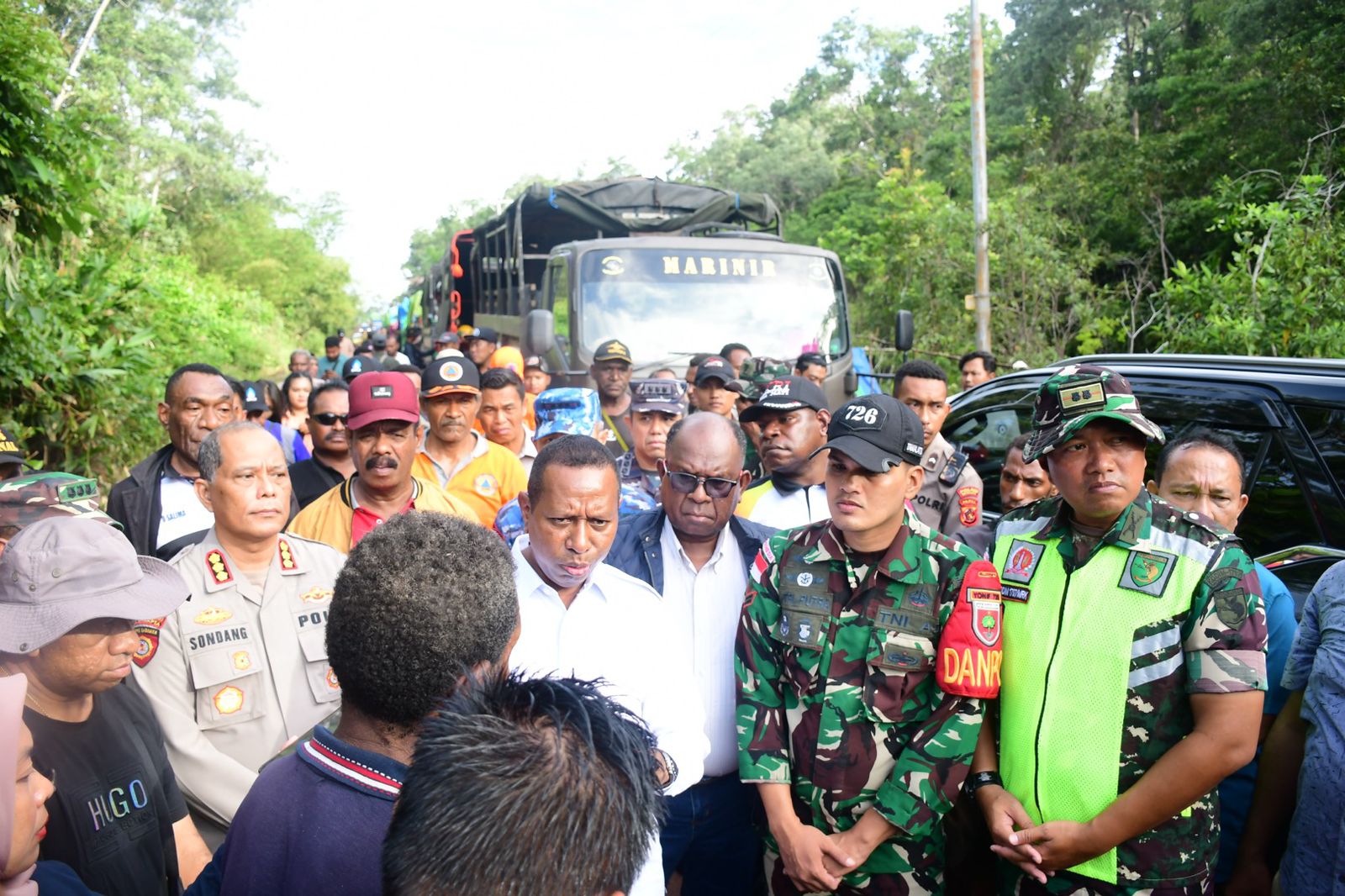 Kegiatan membantu evakuasi dan penyaluran bantuan kepada masyarakat dilaksanakan dengan semua komponen masyarakat, juga mendukung rombongan Pj Gubernur Papua Selatan, Apolo Safanpo, ST., M.T., IPM melaksanakan peninjauan lokasi banjir.