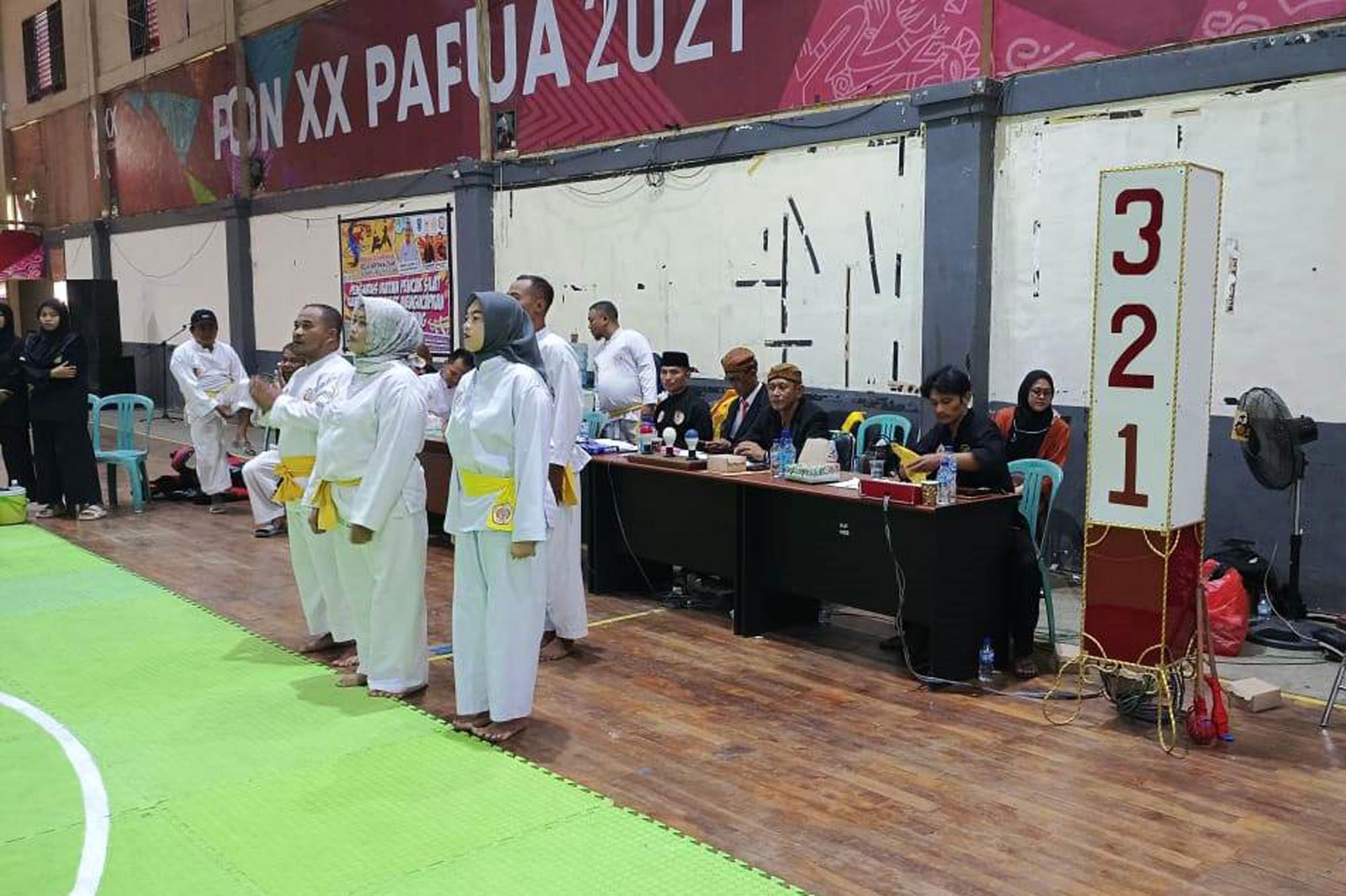 TNI AL, Dispen Kormar (Merauke). Prajurit Yonmarhanlan XI Merauke atas nama Praka Mar Diki Prasetyo terlibat Panitia Pekan Olahraga Pelajar se Papua Selatan Tahun 2024 Cabor Pencak Silat bertempat di Gor Hiad Sai, Jl. Prajurit, Distrik Merauke, Kab. Merauke, Papua Selatan. Selasa (23/04/2024).