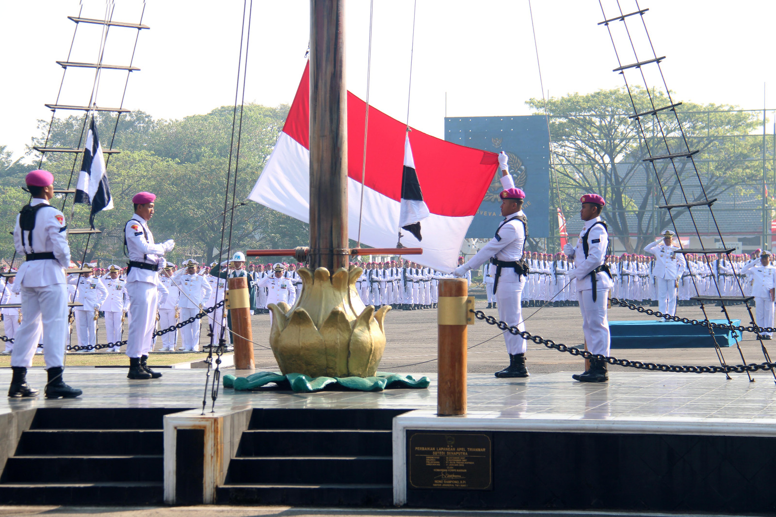 TNI Angkatan Laut, Dispen Kormar (Surabaya). Komandan Resimen Kavaleri 2 Marinir (Danmenkav 2 Mar) Letkol Mar La Ode Jimmy Herizal Rahman, M.Tr.Hanla., M.M. bersama Prajurit dan Pegawai Negeri Sipil (PNS) Menkav 2 Mar melaksanakan Upacara Detik-Detik Proklamasi peringatan Hari Ulang Tahun (HUT) ke-79 kemerdekaan Republik Indonesia Tahun 2024 di Kesatrian Marinir Soetedi Senaputra, Bhumi Marinir Karangpilang Surabaya, Jawa Timur. Sabtu (17/8/2024).