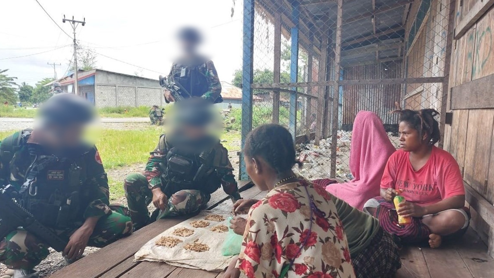 Dispen Kormar TNI Angkatan Laut (Yahukimo Papua Pegunungan). Prajurit Korps Marinir dari Satgas Pamtas Mobile RI-PNG, Yonif 7 Marinir/Gobang memborong hasil bumi yang dijual masyarakat di pasar tradisonal di Distrik Dekai, Yahukimo Provinsi Papua Pegunungan. Sabtu (11/05/2024).