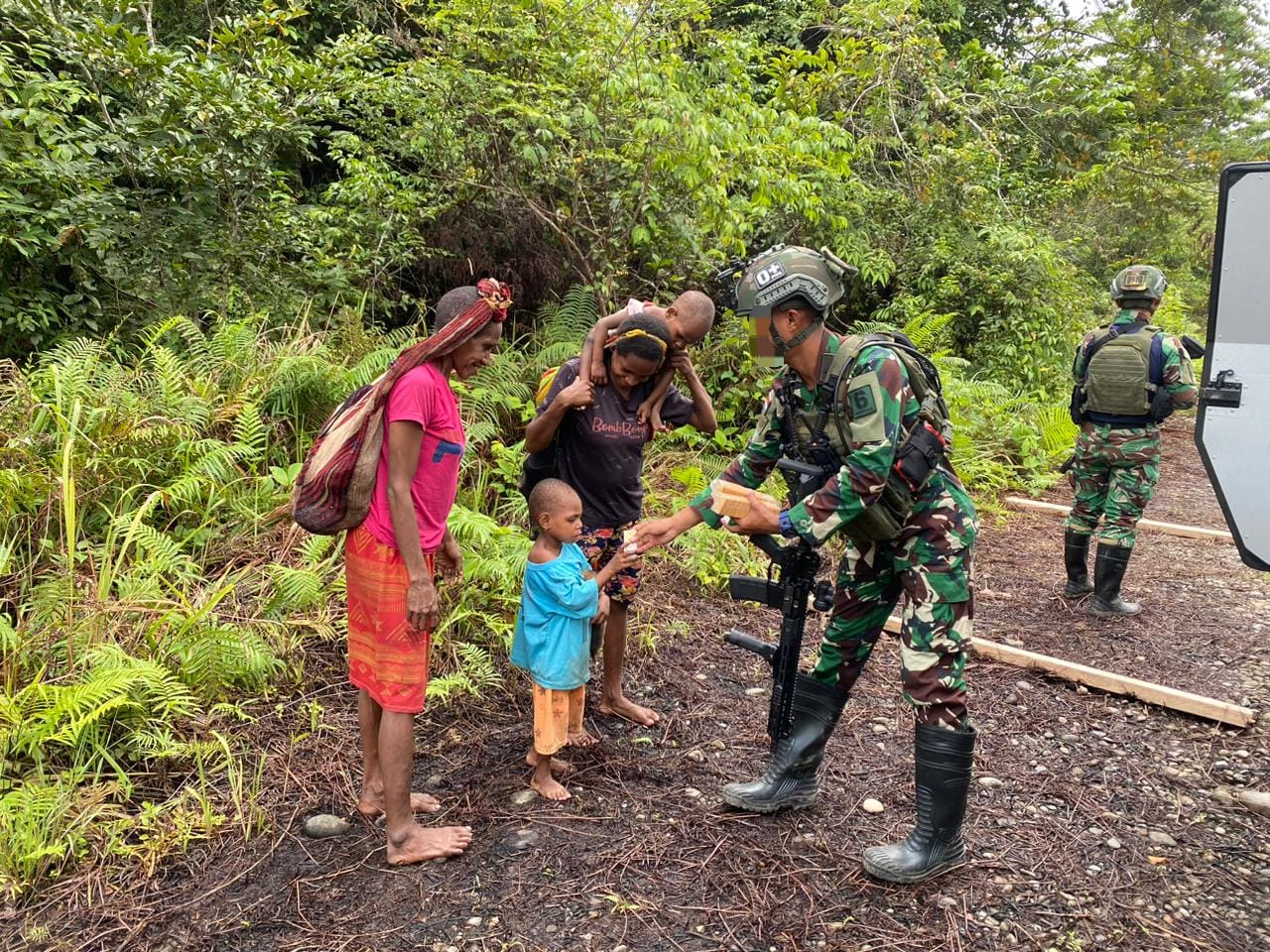 TNI AL, Pasmar 1. Sebagai bentuk rasa syukur dan peduli akan pada pertumbuhan anak-anak Papua, Satgas Pamtas Mobile RI-PNG Yonif 6 Marinir Koops Habema membagikan susu kepada anak-anak di daerah Yahukimo, Papua Senin (08/07/2024). Kegiatan tersebut bertujuan untuk berbagi kebahagiaan serta mempererat hubungan antara TNI dengan masyarakat agar adanya keberadaan Satgas ditengah-tengah masyarakat bisa menjadi terciptanya hubungan yang baik antara personel satgas dengan masyarakat.