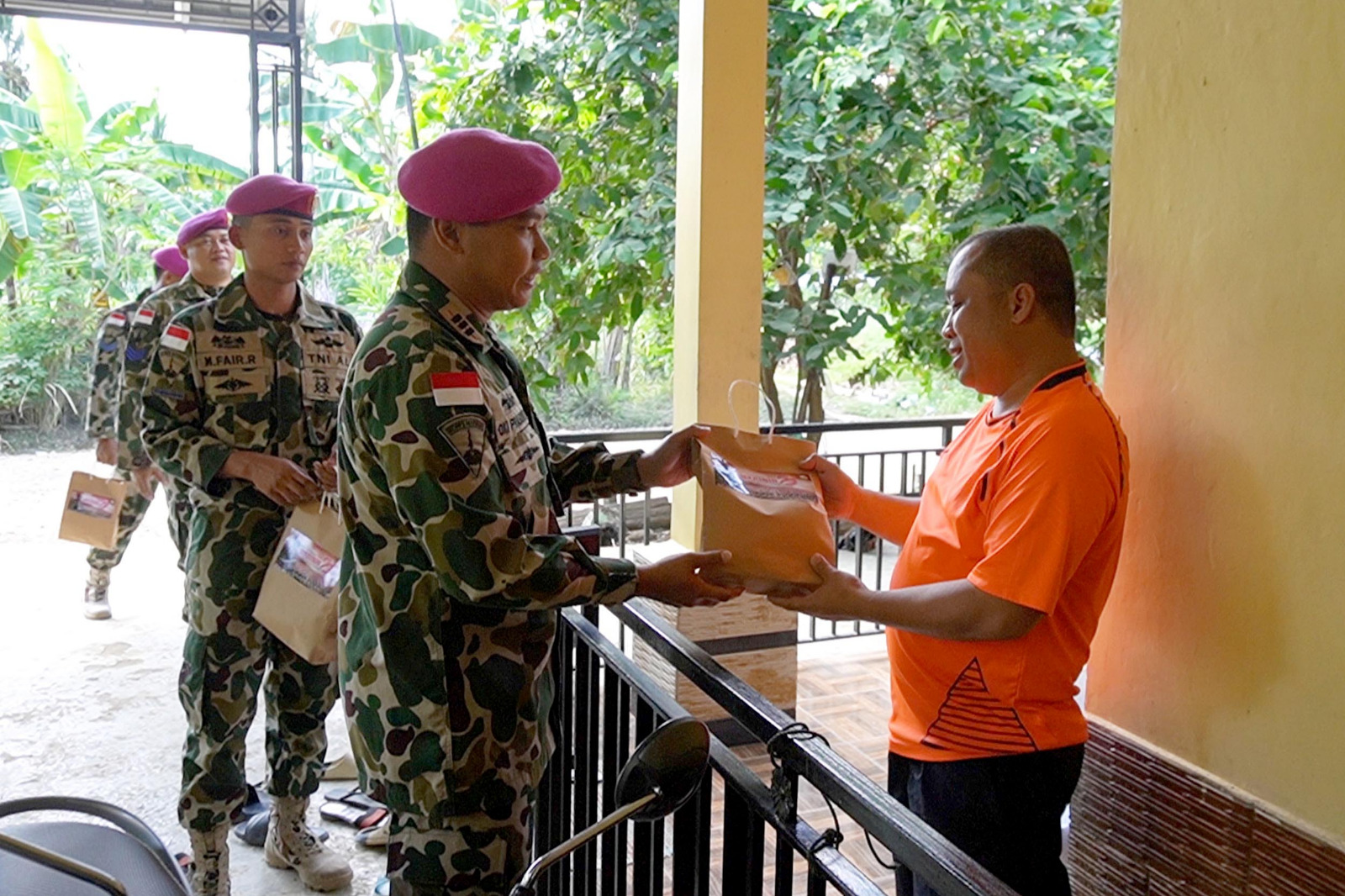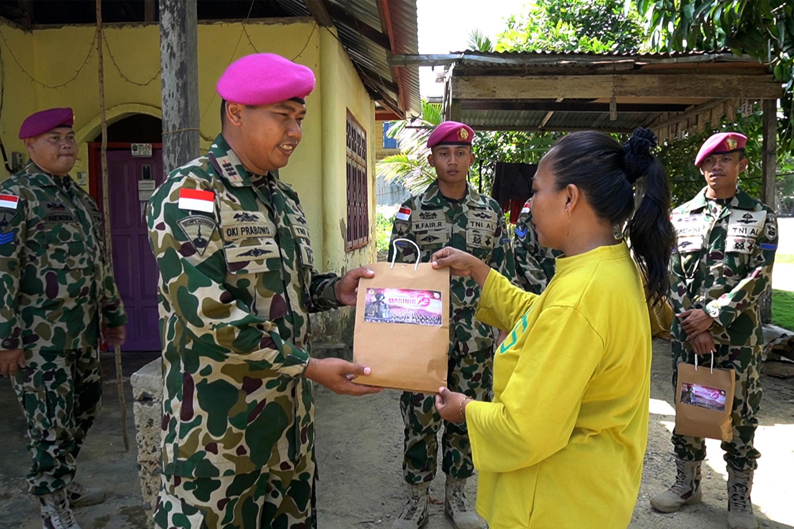 TNI Angkatan Laut, Dispen Kormar (Nunukan). Masih dalam semarak perayaan peringatan Hari Ulang Tahun (HUT) ke-79 Korps Marinir TNI AL, Satgasmar Pam Ambalat XXX berbagi bingkisan kepada Masyarakat di sekitar Markas Komando Taktis (Makotis) Satgasmar Pam Ambalat, Desa Tanjung Aru, Sebatik, Nunukan, Kalimantan Utara. Jumat (22/11/2024).