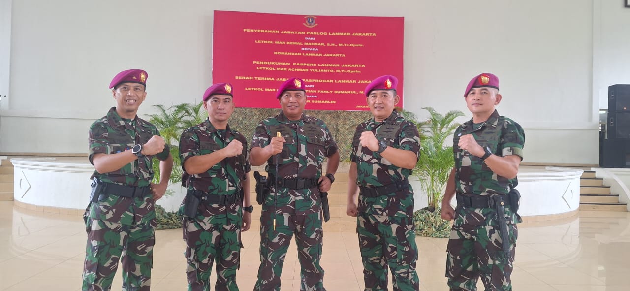 Perwira Staf Logistik dari Letkol Marinir Kemal Mahdar, S.H., M.Tr.opsla diserahkan kepada Danlanmar Jakarta, Paspers Lanmar Jakarta dijabat oleh Letkol Marinir Achmad Yulianto, M.Tr Opsla dan Jabatan Pasprogar Lanmar Jakarta dari Letkol Marinir Hence Kristian Fanly Sumakul, M.Sc. kepada Mayor Marinir Sumarlin.
