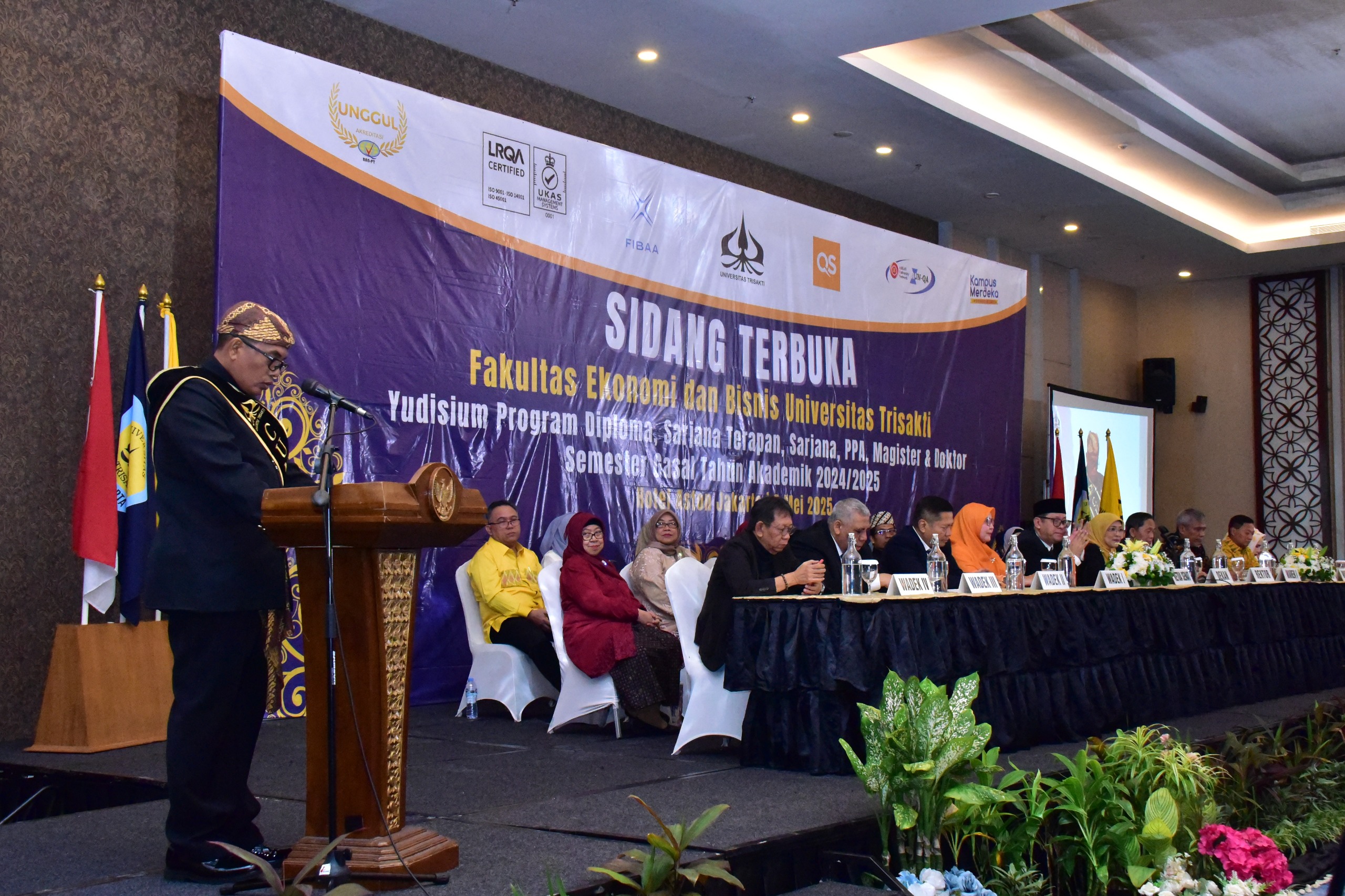 Yudisium FEB Universitas Trisakti, kali ini diikuti oleh 762 peserta dari berbagai jenjang pendidikan, mulai dari Diploma (D3), Sarjana Terapan (D4), Sarjana (S1), Profesi Akuntan (PPA), Magister (S2), hingga Doktor (S3). Acara dibuka secara resmi oleh pimpinan fakultas dan universitas, diiringi lantunan lagu kebangsaan Indonesia Raya dan Mars Universitas Trisakti yang dibawakan oleh Paduan Suara Mahasiswa Universitas Trisakti (PSMUT). Suasana semakin meriah dengan kehadiran para dosen, orang tua, dan tamu undangan dari berbagai kalangan.