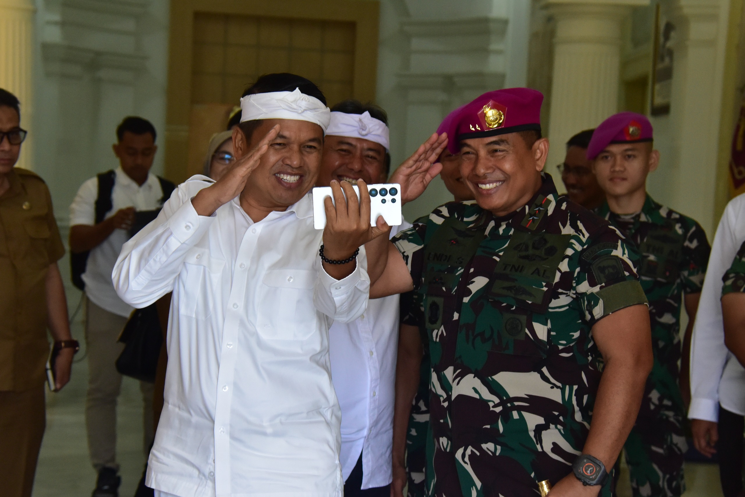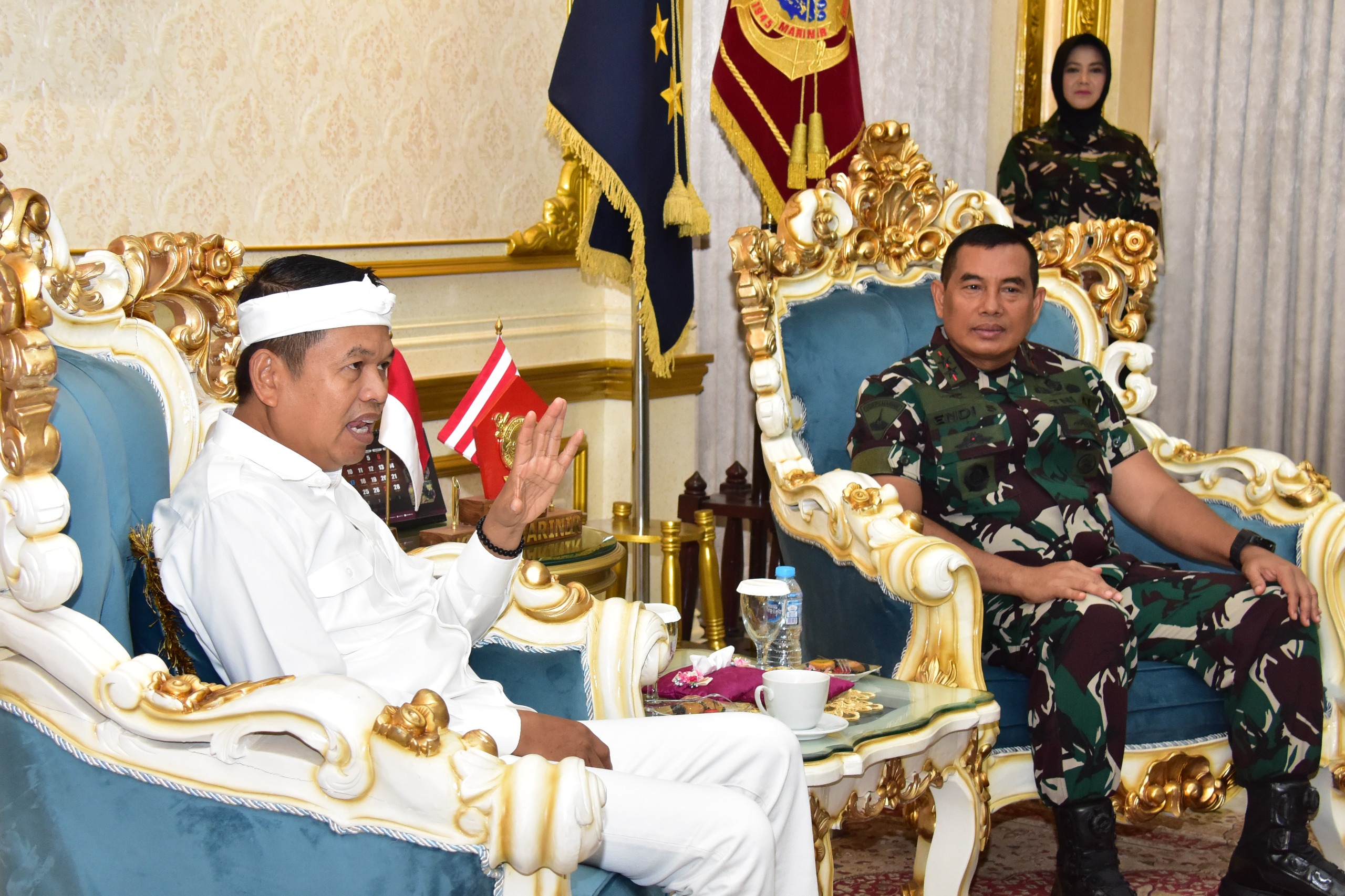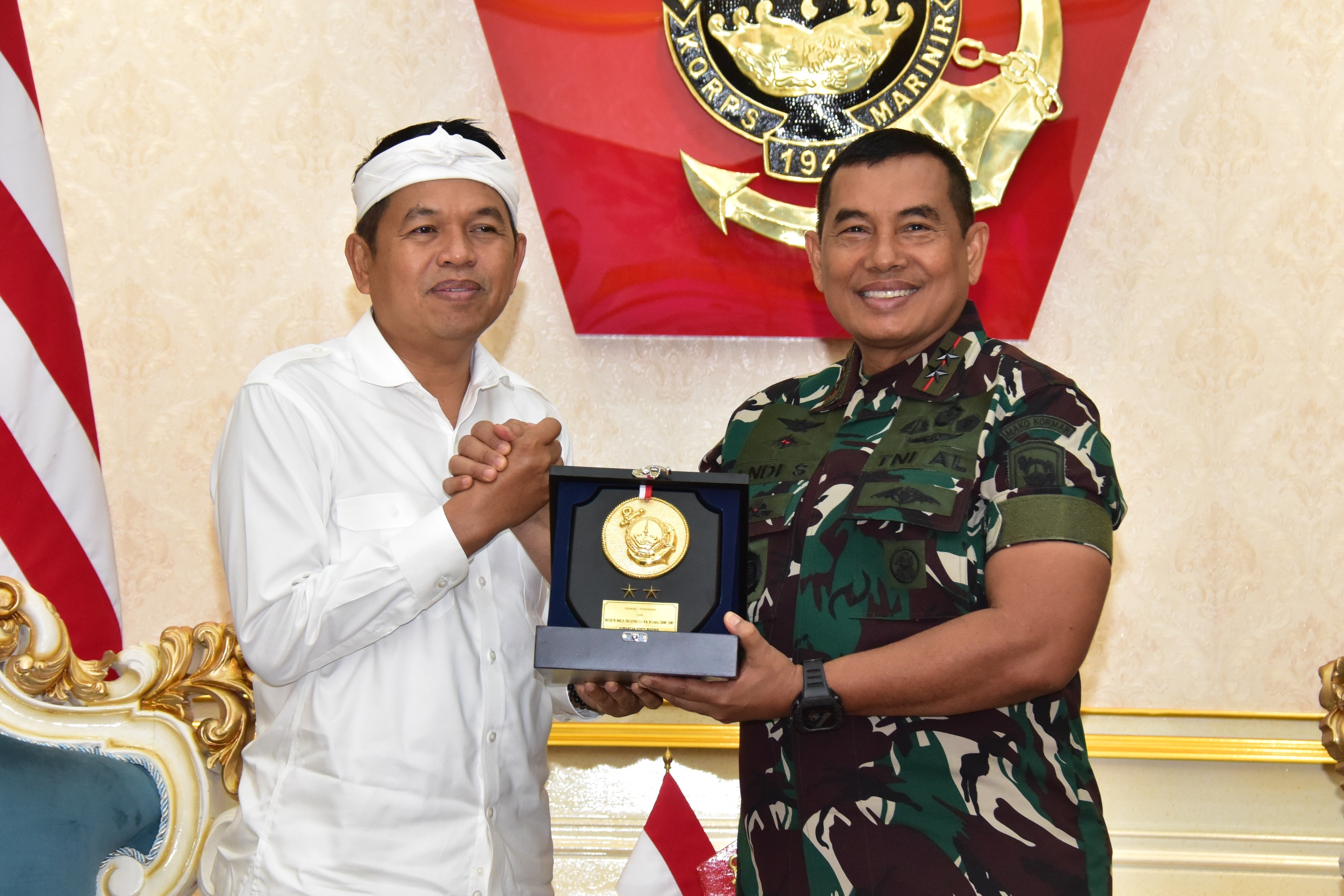 Dispen Kormar TNI Angkatan Laut (Jakarta) Komandan Korps Marinir (Dankormar) Mayor Jenderal TNI (Mar) Dr. Endi Supardi, S.E., M.M., M.Tr.Opsla., CHRMP., CRMP., menerima kunjungan kerja Gubernur Provinsi Jawa Barat, Bapak Dedi Mulyadi, di Admiral Room, Gedung Utama Markas Komando Korps Marinir (Mako Kormar), Jalan Prajurit KKO Usman dan Harun No. 40, Kwitang, Jakarta Pusat, pada Senin (30/06/2025).