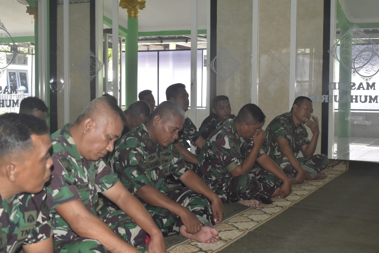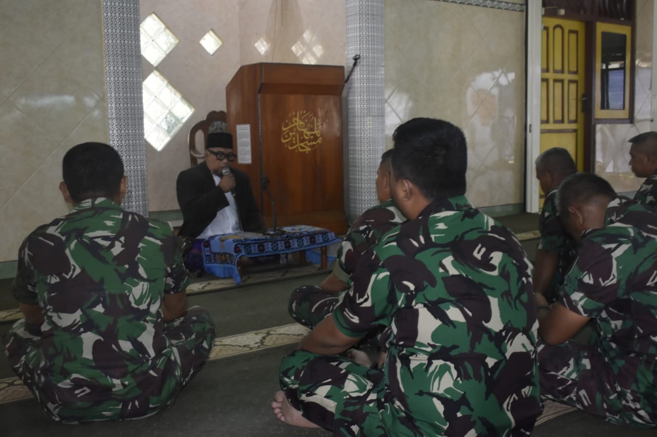 TNI AL. Dispen Kormar (Surabaya). Dalam rangka meningkatkan keimanan dan ketaqwaan kepada Tuhan Yang Maha Esa, Prajurit Batalyon Kesehatan 2 Marinir melaksanakan pembinaan rohani melalui Kauseri agama di masjid Al Muhajirin Yonkes 2 Mar, Karangpilang, Surabaya. Senin, (08/07/2024).