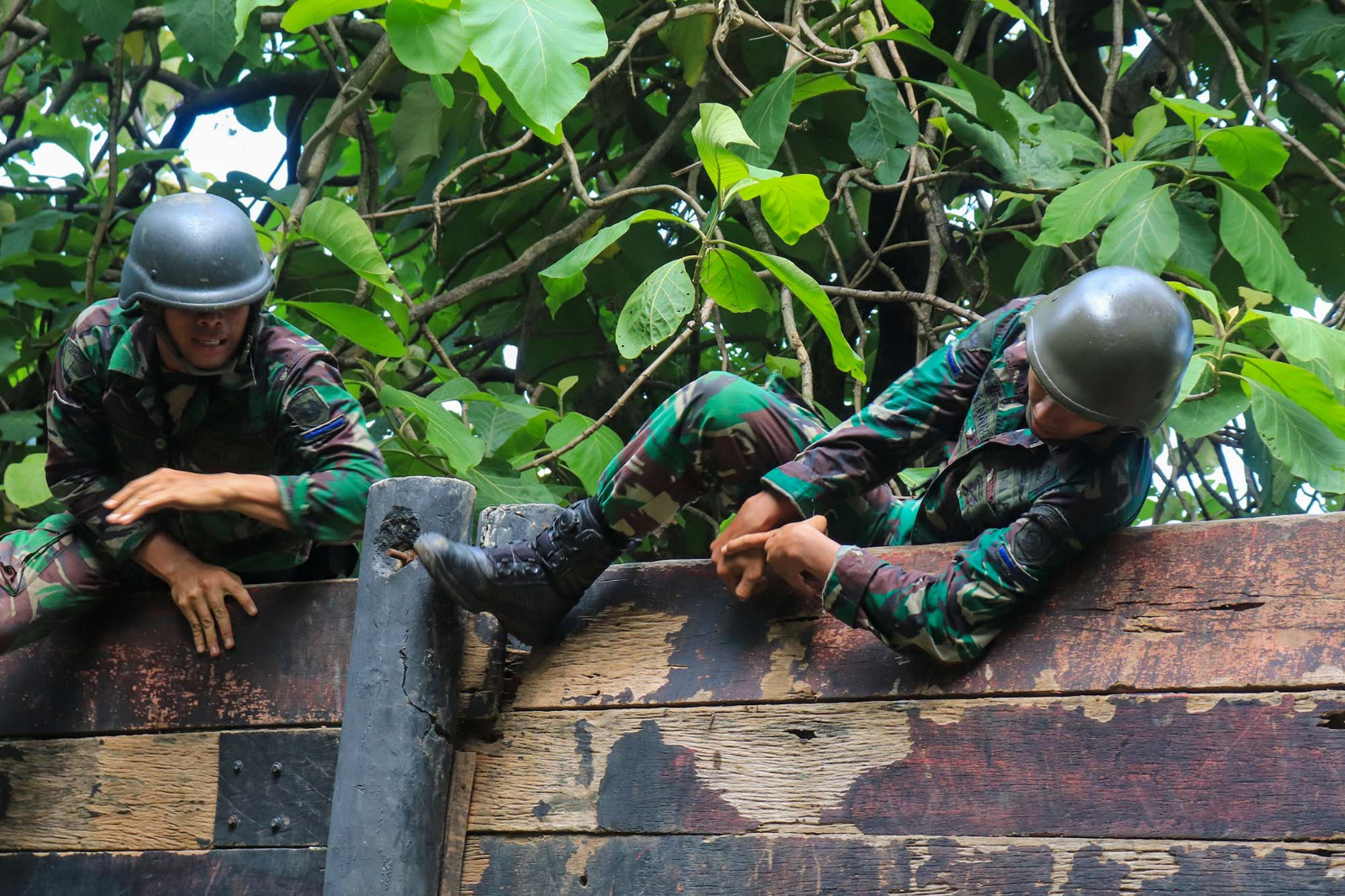 Tingkatkan Kemampuan Fisik, Prajurit Yonif 3 Marinir Laksanakan Latihan Halang Rintang