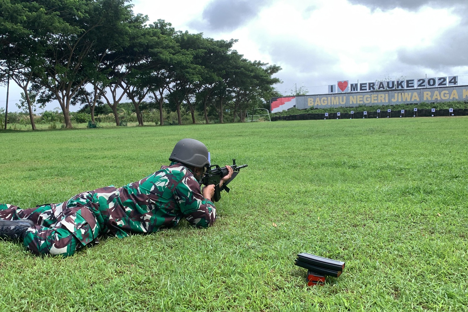 Tingkatkan Kemampuan, Prajurit Yonmarhanlan XI Merauke Laksanakan Latihan Menembak