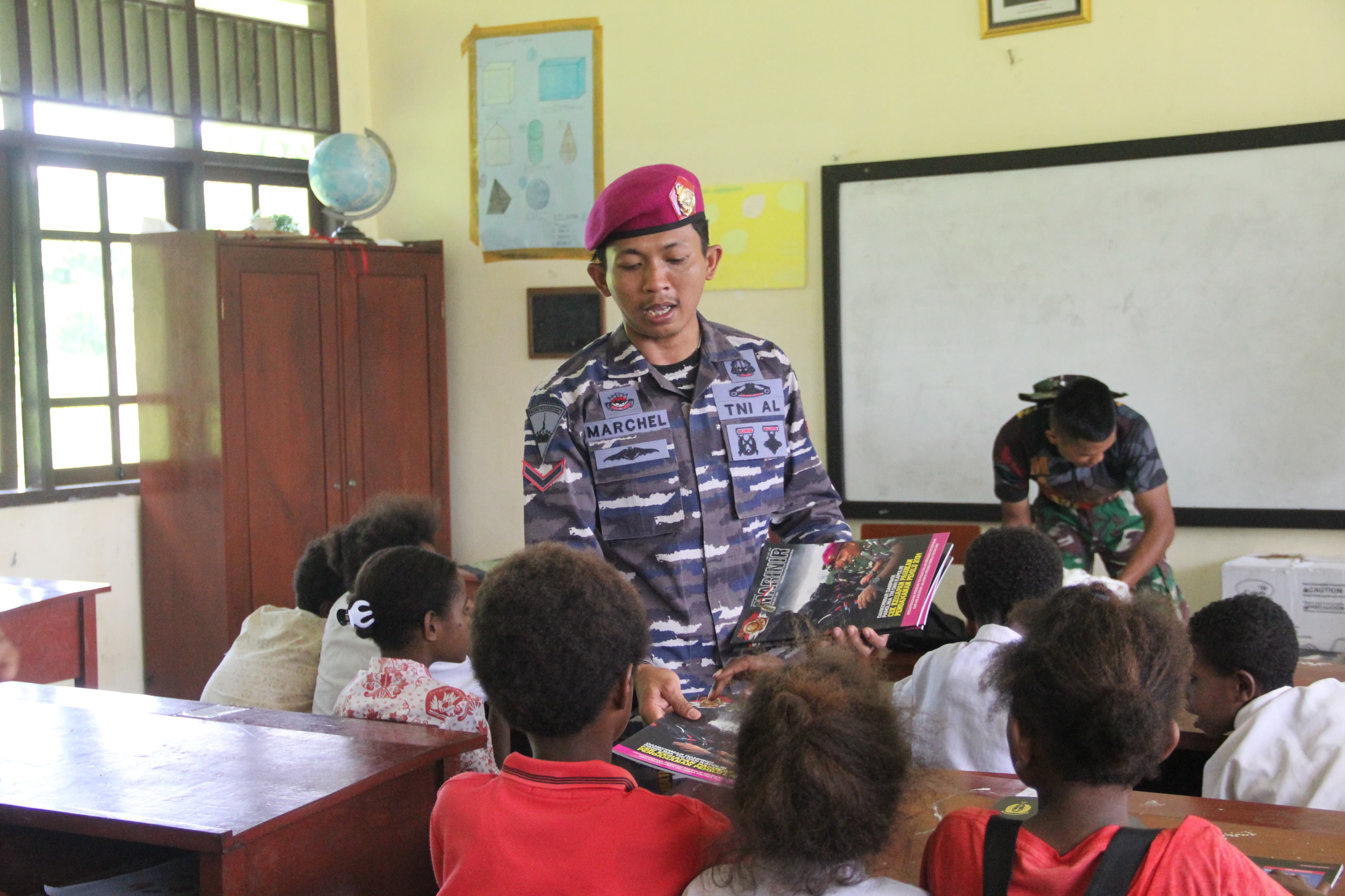 Tingkatkan Minat Baca, Pasmar 3 Bagikan Buku Bacaan Kepada Murid SD YPK Yeflio