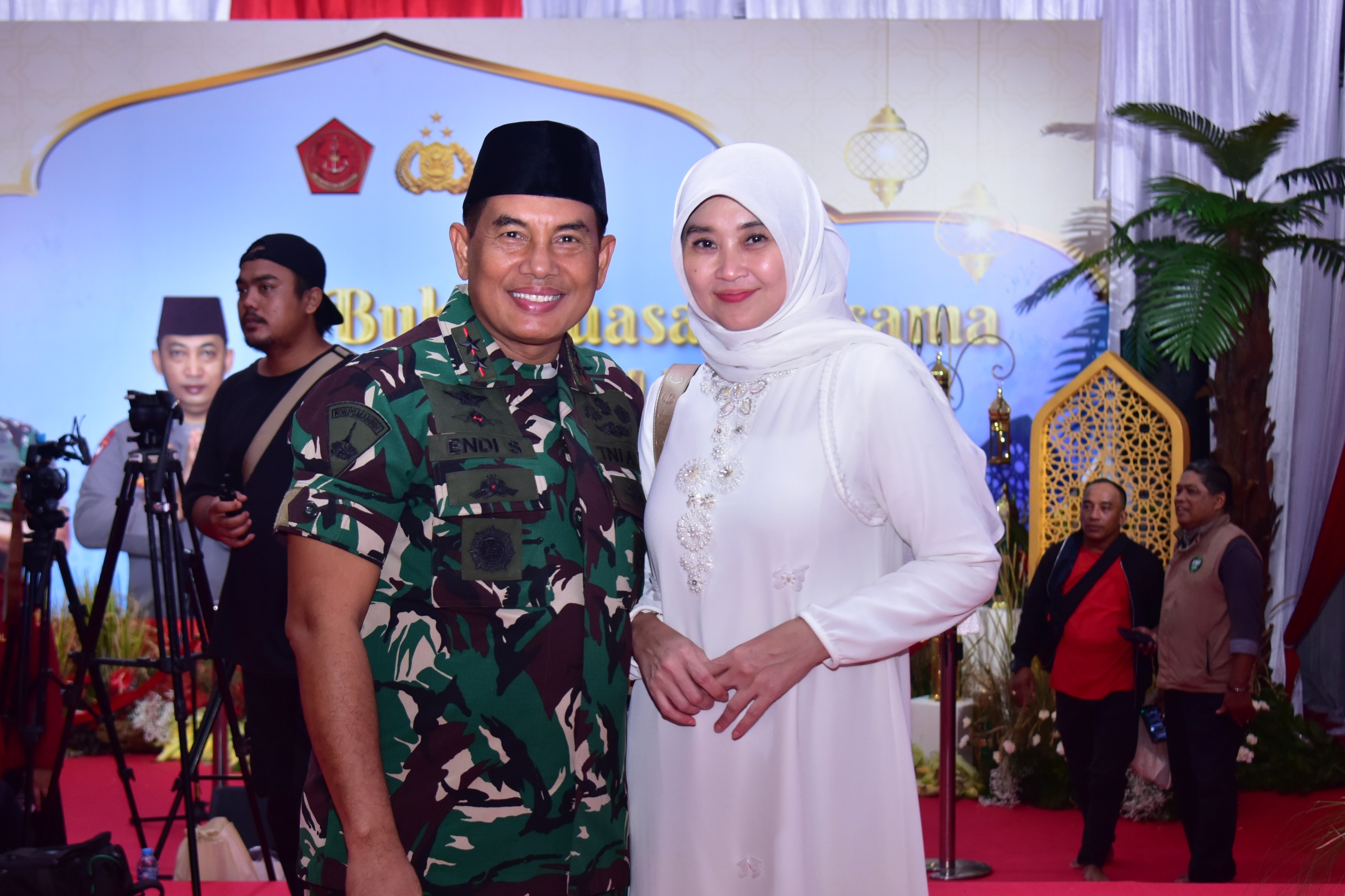 Dispen Kormar TNI Angkatan Laut (Jakarta). Komandan Korps Marinir (Dankormar) Mayor Jenderal TNI (Mar) Dr. Endi Supardi, S.E., M.M., M.Tr.Opsla., CHRMP., CRMP., di dampingi Ketua Pengurus Gabungan Jalasenastri Ny. Nana Endi Supardi menghadiri kegiatan buka puasa Ramadan bersama TNI-Polri 1446 Hijriah, di Lapangan Bhayangkara, Mabes Polri, Jakarta Selatan, Senin (17/03/2025).
