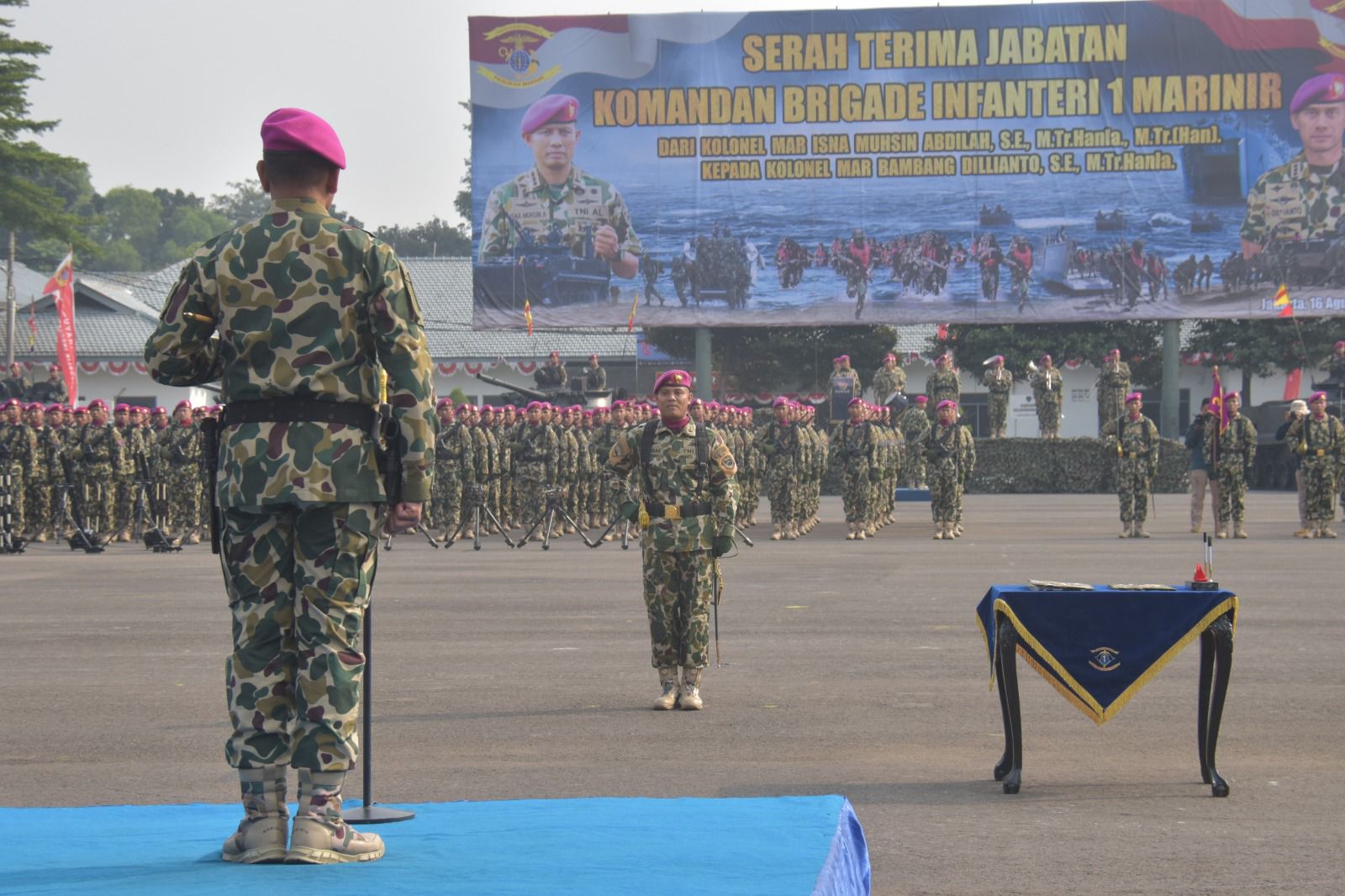 Pada jabatan Danbrigif 1 Marinir diserah terimakan dari Kolonel Marinir Isna Muhsin Abdilah, S.E., M.Tr., Hanla., M.Tr(Han), kepada Kolonel Marinir Bambang Dilianto, S.E., M.Tr.Hanla., yang sebelumnya menjabat sebagai Kadispen Kormar sementara itu Kolonel Marinir Kolonel Marinir Isna Muhsin Abdilah, S.E., M.Tr., Hanla., M.Tr(Han), akan menempati jabatan yang baru sebagai Kadismat Kormar.