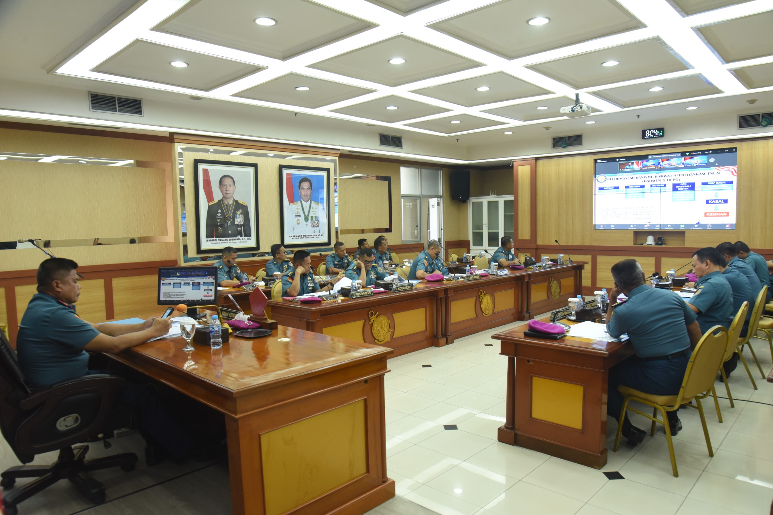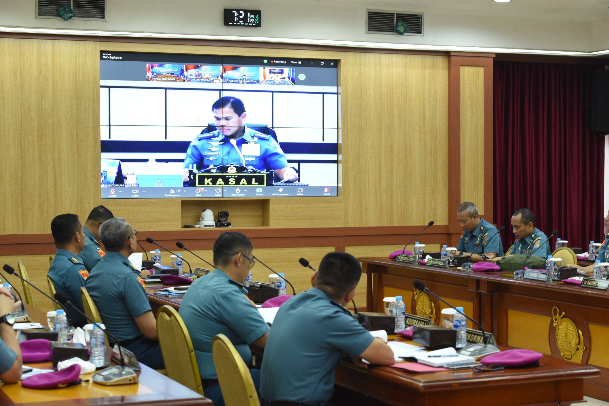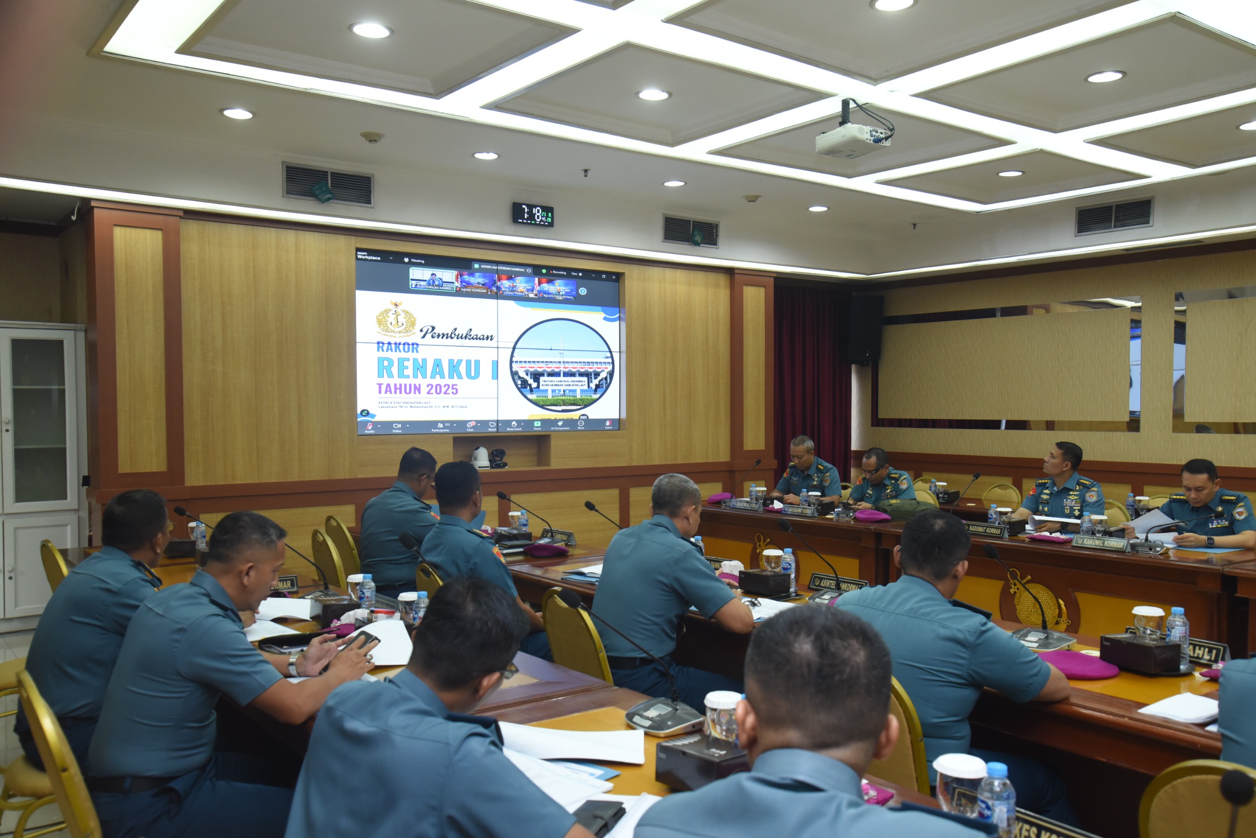 Dispen Kormar TNI Angkatan Laut (Jakarta). Wakil Komandan Korps Marinir Brigjen TNI (Mar) Muhammad Nadir, M.Tr.Opsla., mengikuti Rapat Kordinasi Perencanaan dan Keuangan (Rakor Renaku) I TNI Angkatan Laut Tahun 2025 secara virtual di ruang rapat Gedung Agoes Soebekti Mako Kormar Jl. Raya Usman dan Harun No.40 Kwitang Jakarta Pusat, Rabu (25/06/2025).