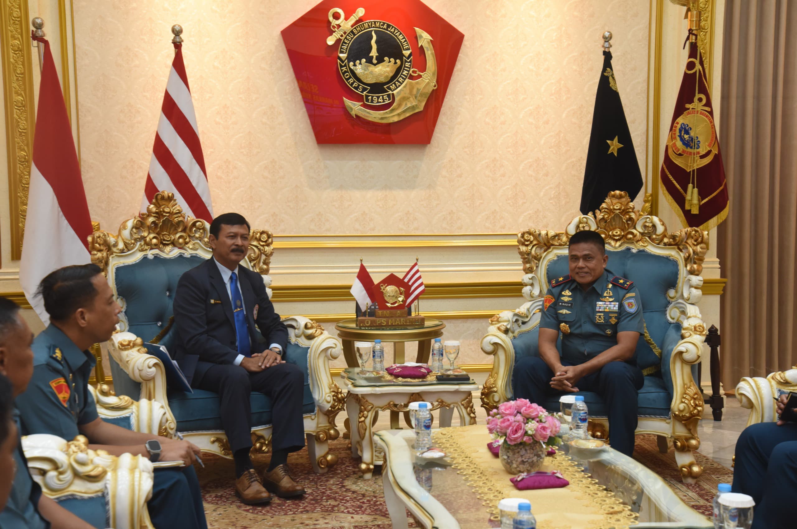 Dispen Kormar TNI Angkatan Laut (Jakarta). Wakil Komandan Korps Marinir Brigjen TNI (Mar) Muhammad Nadir, M.Tr.Opsla., menerima kunjungan kerja Rektor II Universitas Hang Tuah (UHT) Laksda Dr. Iwan Isnuryanto, S.H., MAP., M.Tr (HAN)., bertempat di Admiral Room Gedung Utama Mako Kormar Jl. Raya Usman dan Harun No.40 Kwitang Jakarta Pusat, Rabu (25/06/2025).