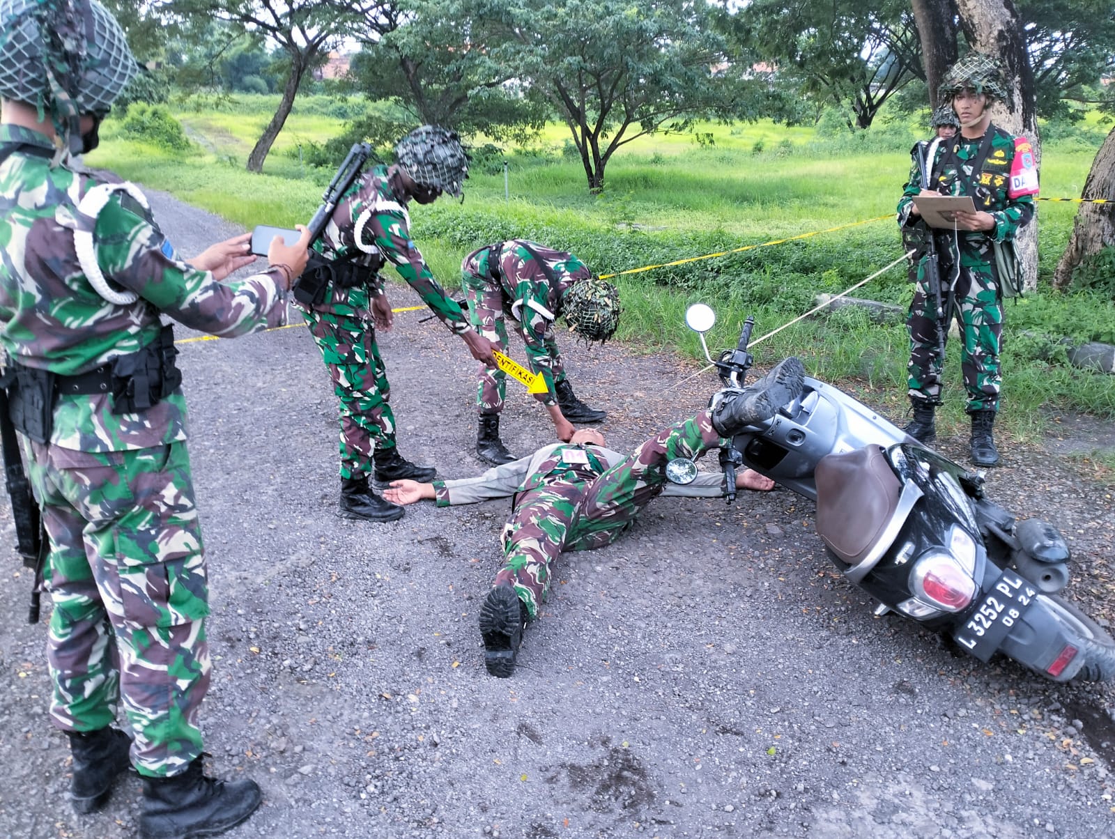 "Selanjutnya di hari kedua para Taruna AAL Tingkat IV Korps Marinir tergabung dalam simulasi Latihan Satbanmin dengan materi yang di ibaratkan Satuan Infanteri mendapatkan tawanan perang di garis depan musuh, sehingga tugas pokok sebagai Batalyon Polisi Militer untuk melaksanakan Rustaper dan materi selanjutnya kita mendapatkan informasi dari satuan kawan ada yang mengalami laka lalin tunggal untuk melaksanakan Olah TKP